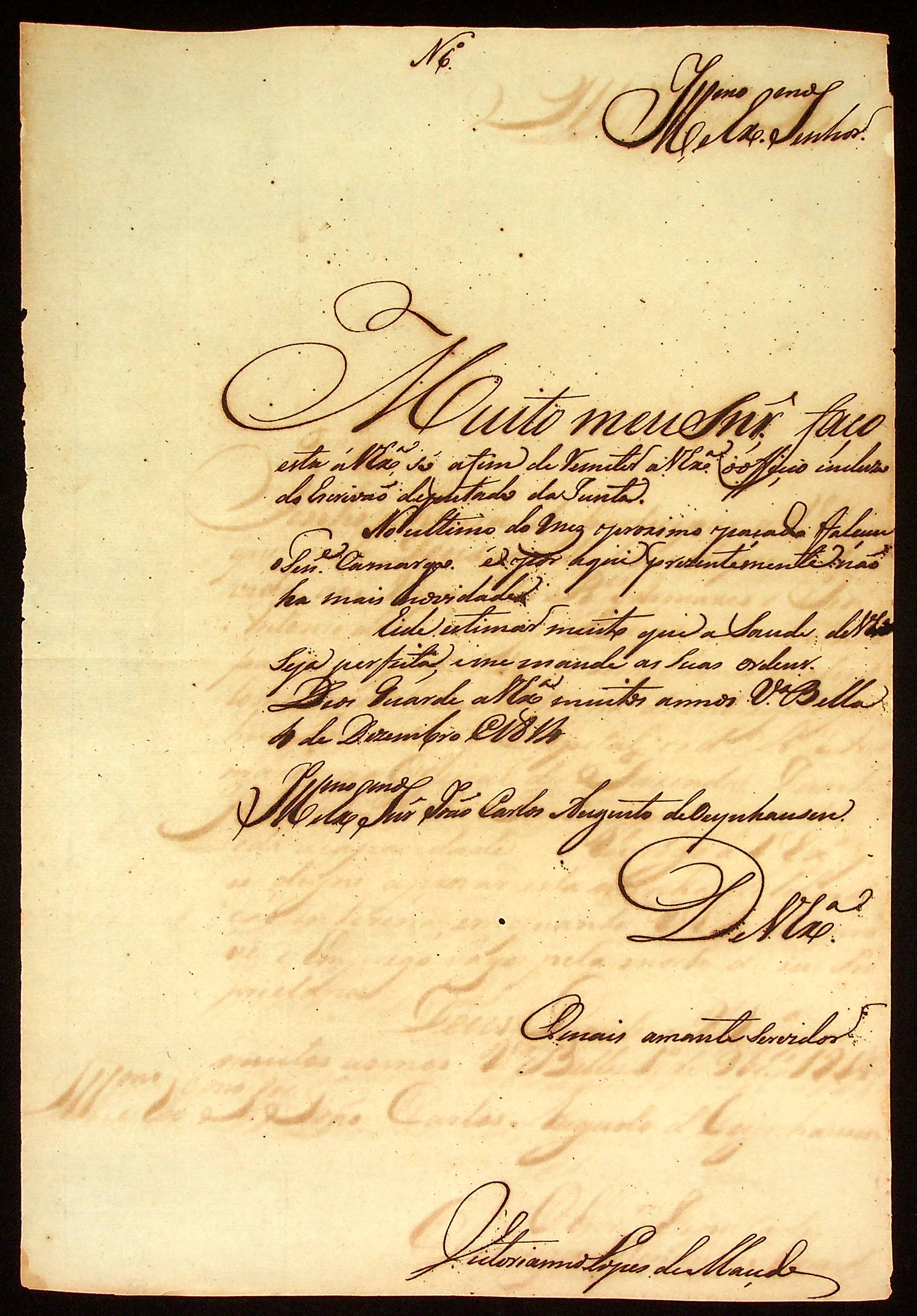 CARTA do [Tenente-Coronel] Vitoriano Lopes de Macedo ao [Governador e Capitão-General da Capitania de Mato Grosso] João Carlos Augusto d’Oeynhausen e Gravenberg.