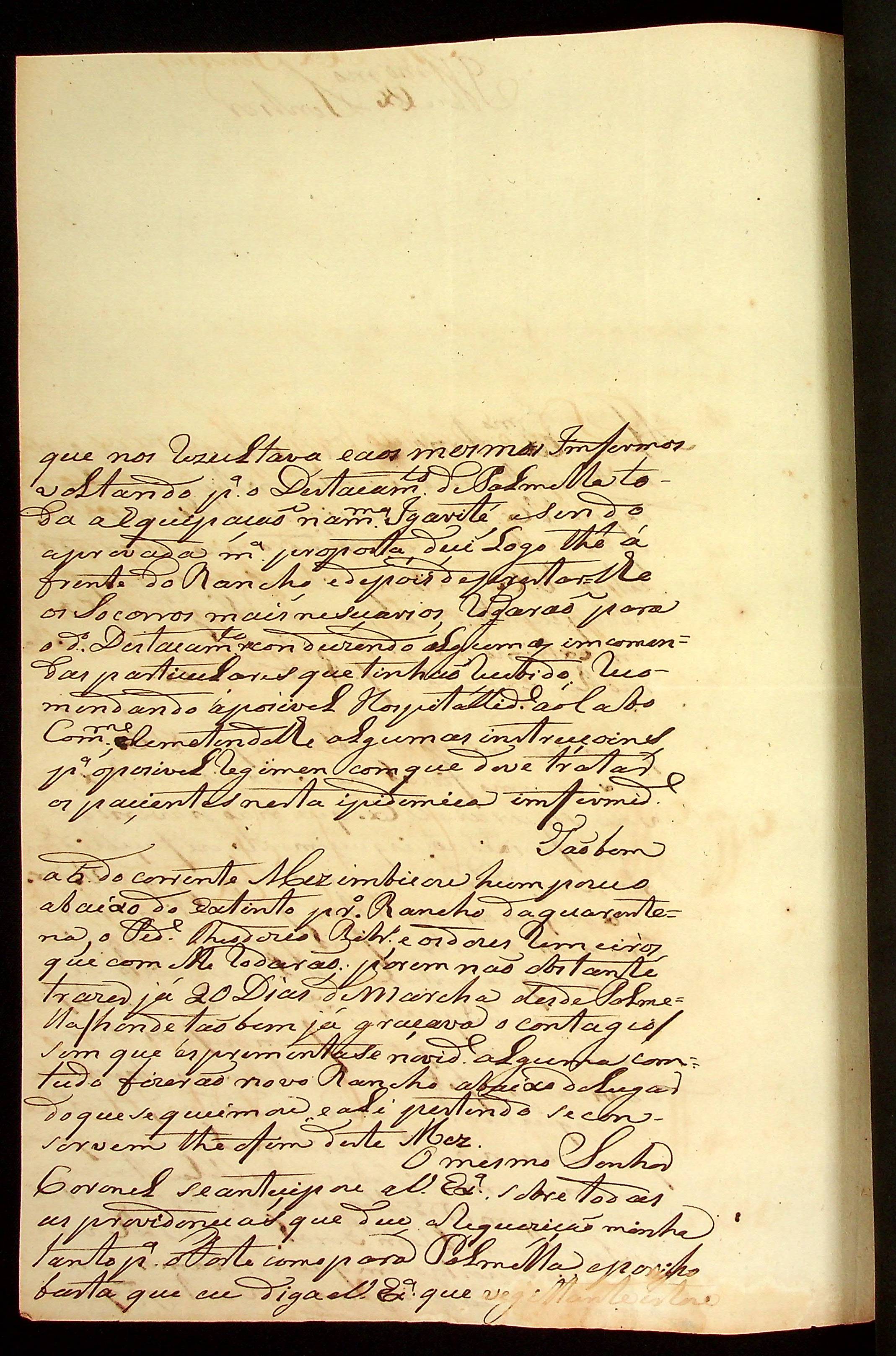 CARTA do [Alferes] Luiz Antônio de Souza Maria de Matos ao [Governador e Capitão-General da Capitania de Mato Grosso] João Carlos Augusto d’Oeynhausen e Gravenberg.