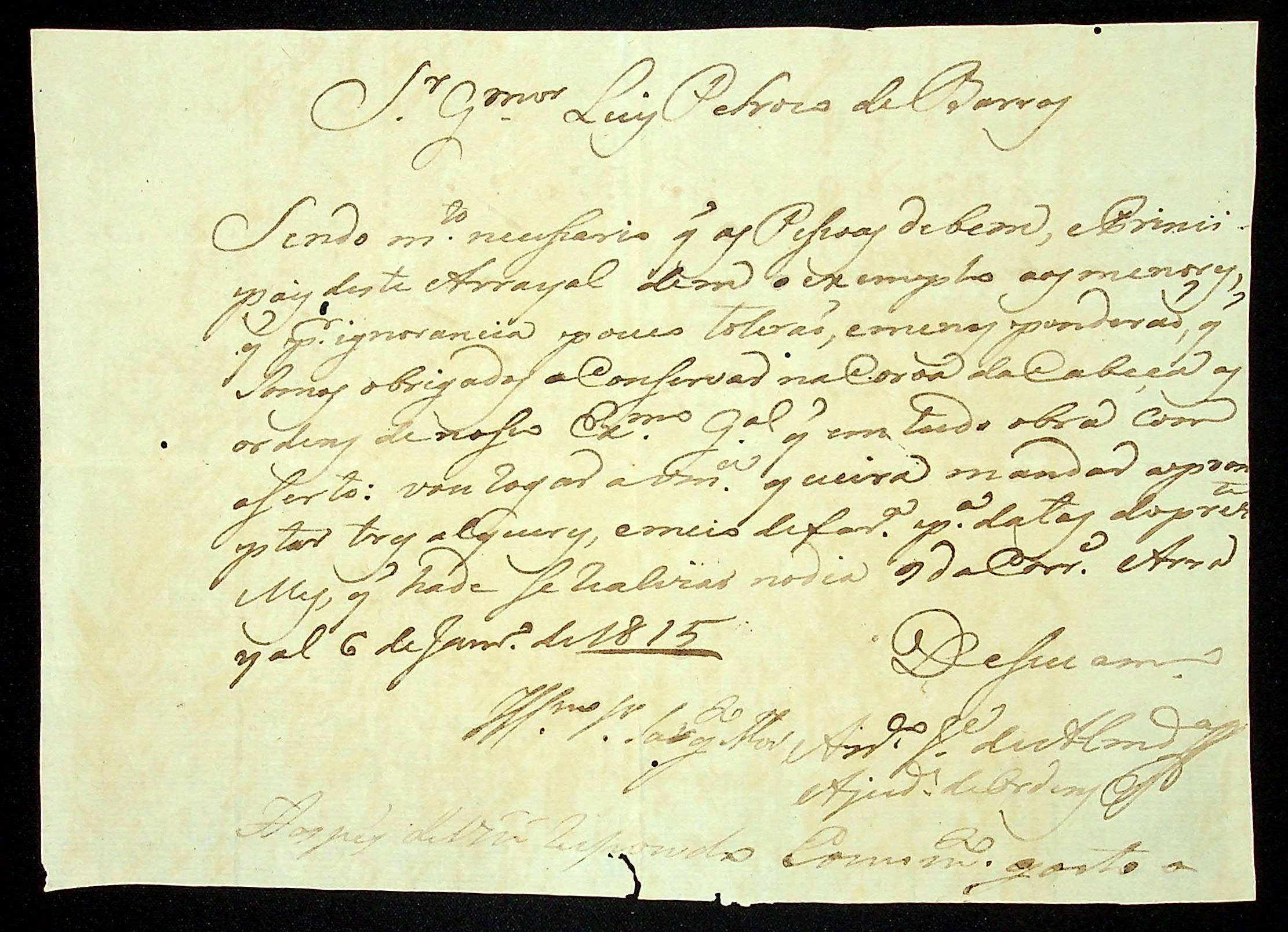 CARTA do Ajudante de Ordens Antônio José de Almeida ao Guarda-mor Luiz Pedro de Barros.