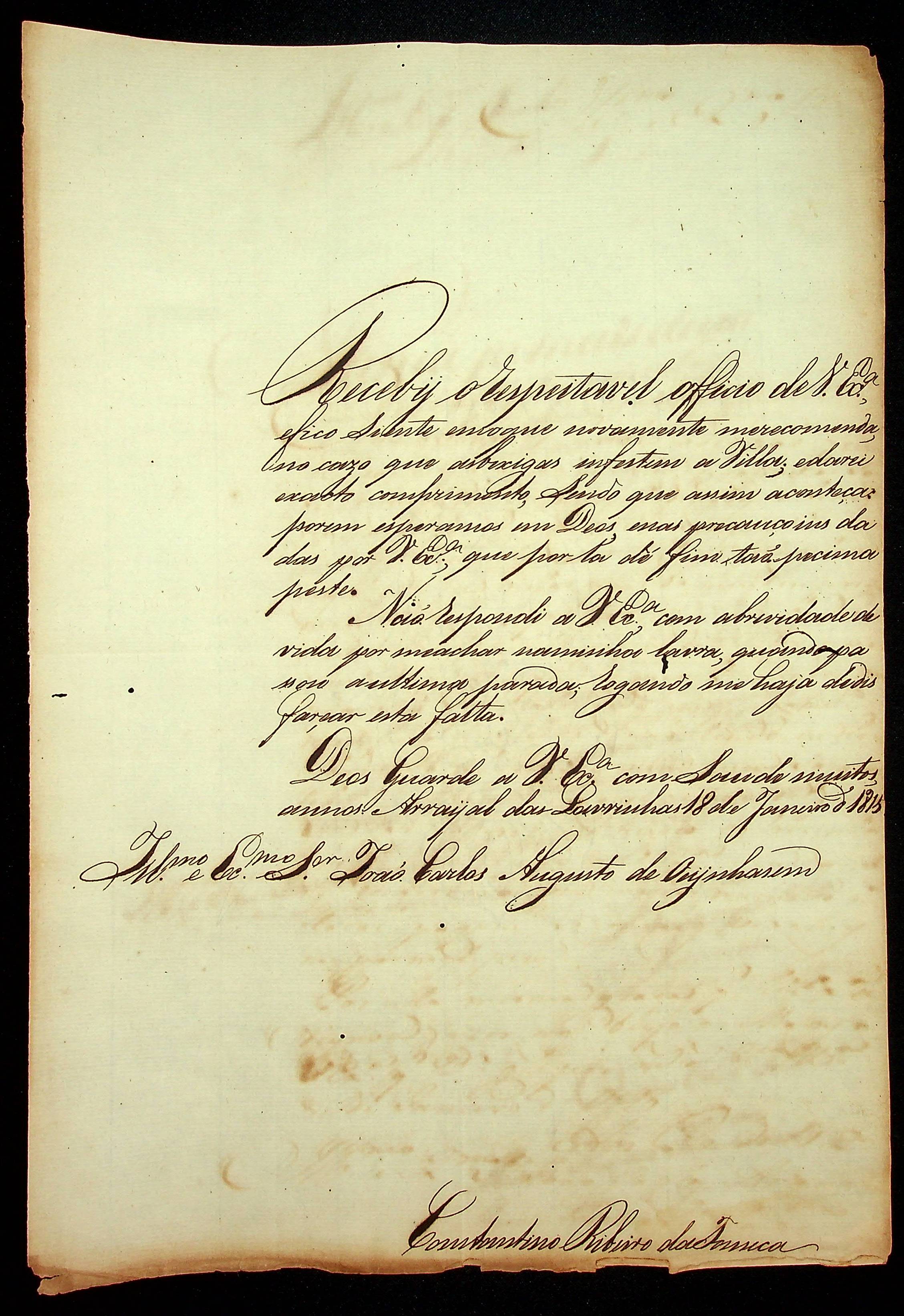 CARTA do [Tenente] Constantino Ribeiro da Fonseca ao [Governador e Capitão-General da Capitania de Mato Grosso] João Carlos Augusto d’Oeynhausen e Gravenberg.