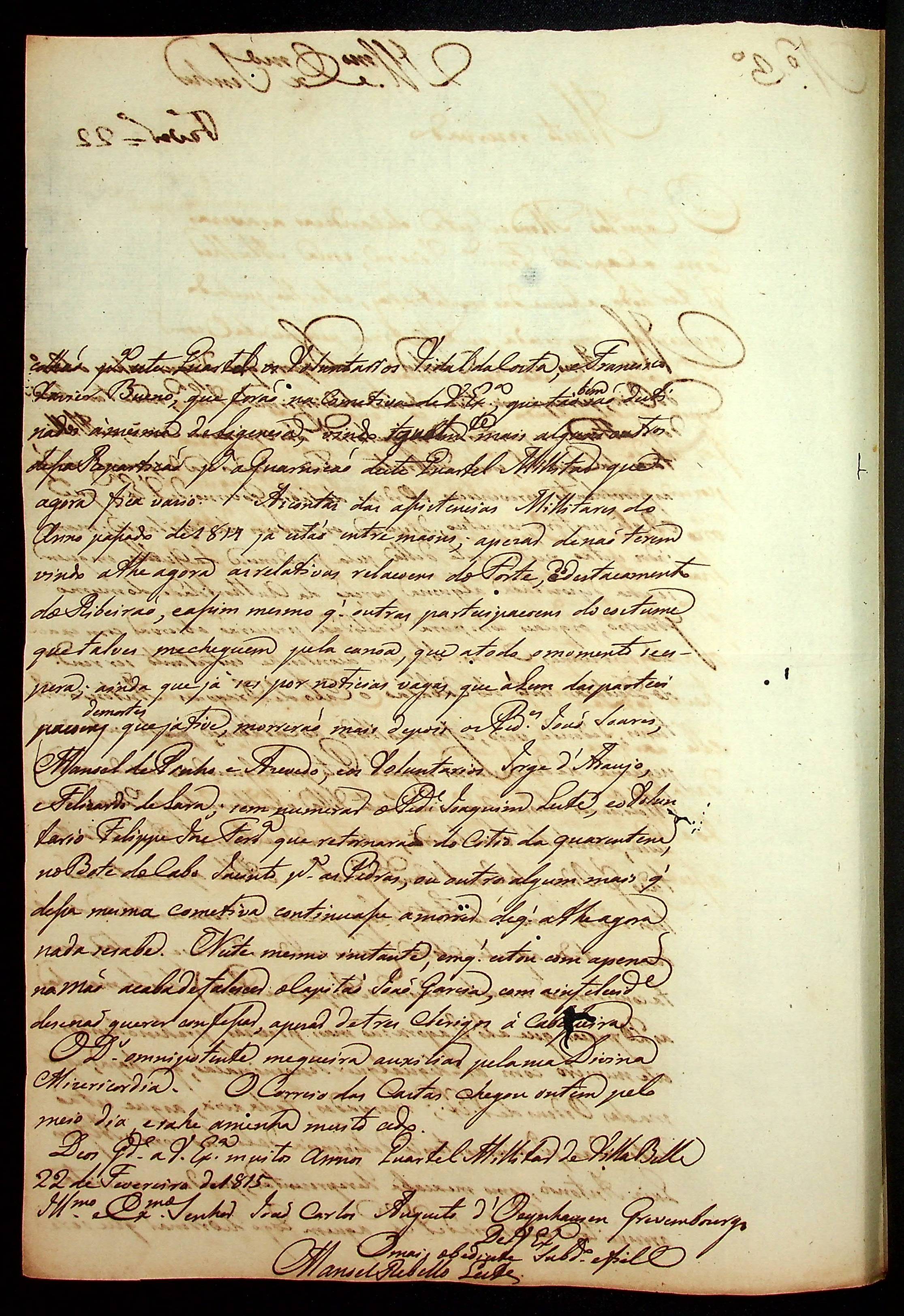 CARTA do [Sargento-mor] Manoel [Rabelo] Leite ao [Governador e Capitão-General da Capitania de Mato Grosso] João Carlos Augusto d’Oeynhausen e Gravenberg.