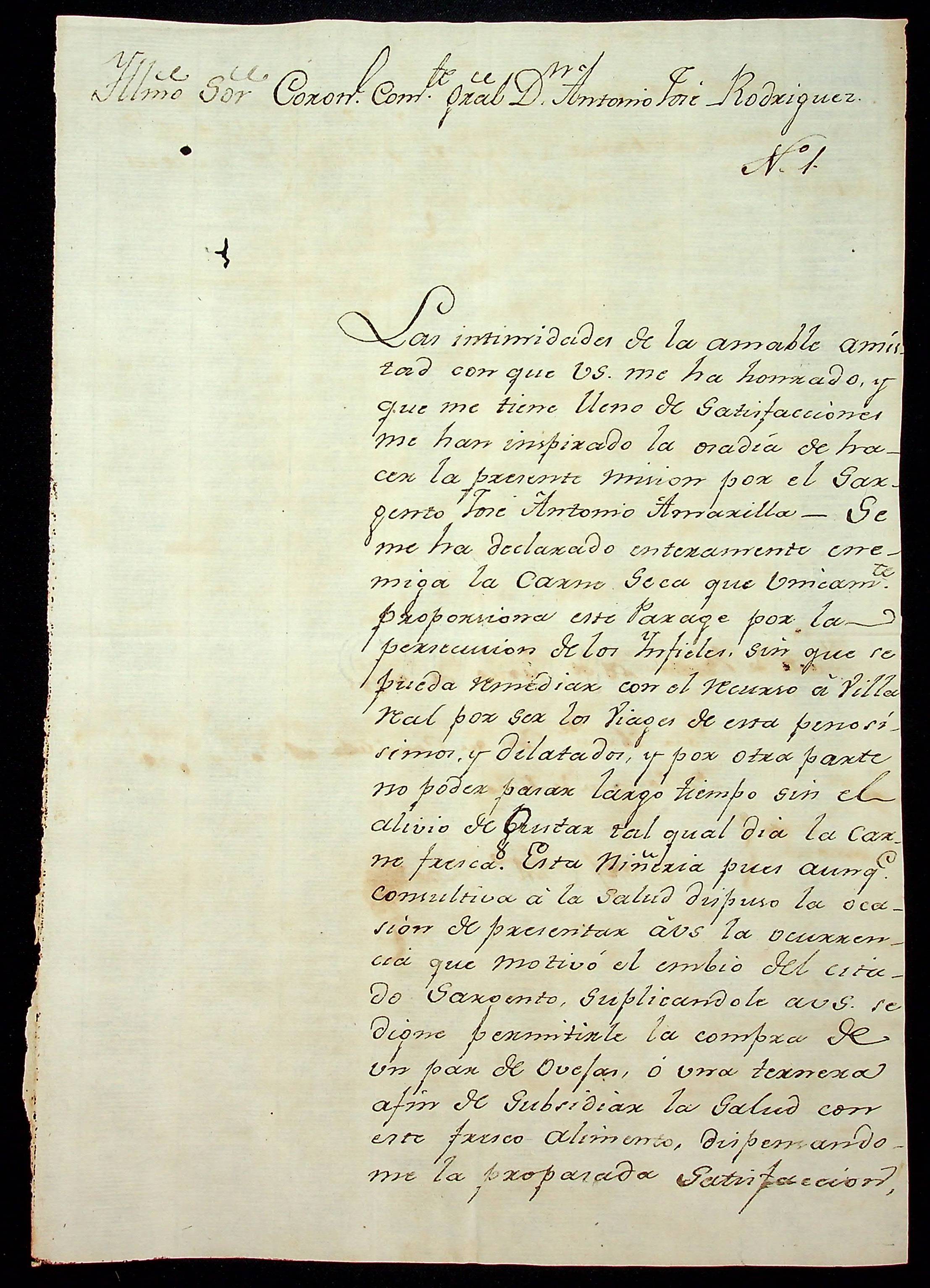 CARTA de Francisco [Bart.]. Laguardia ao Coronel e Comandante Geral Antônio José Rodrigues.