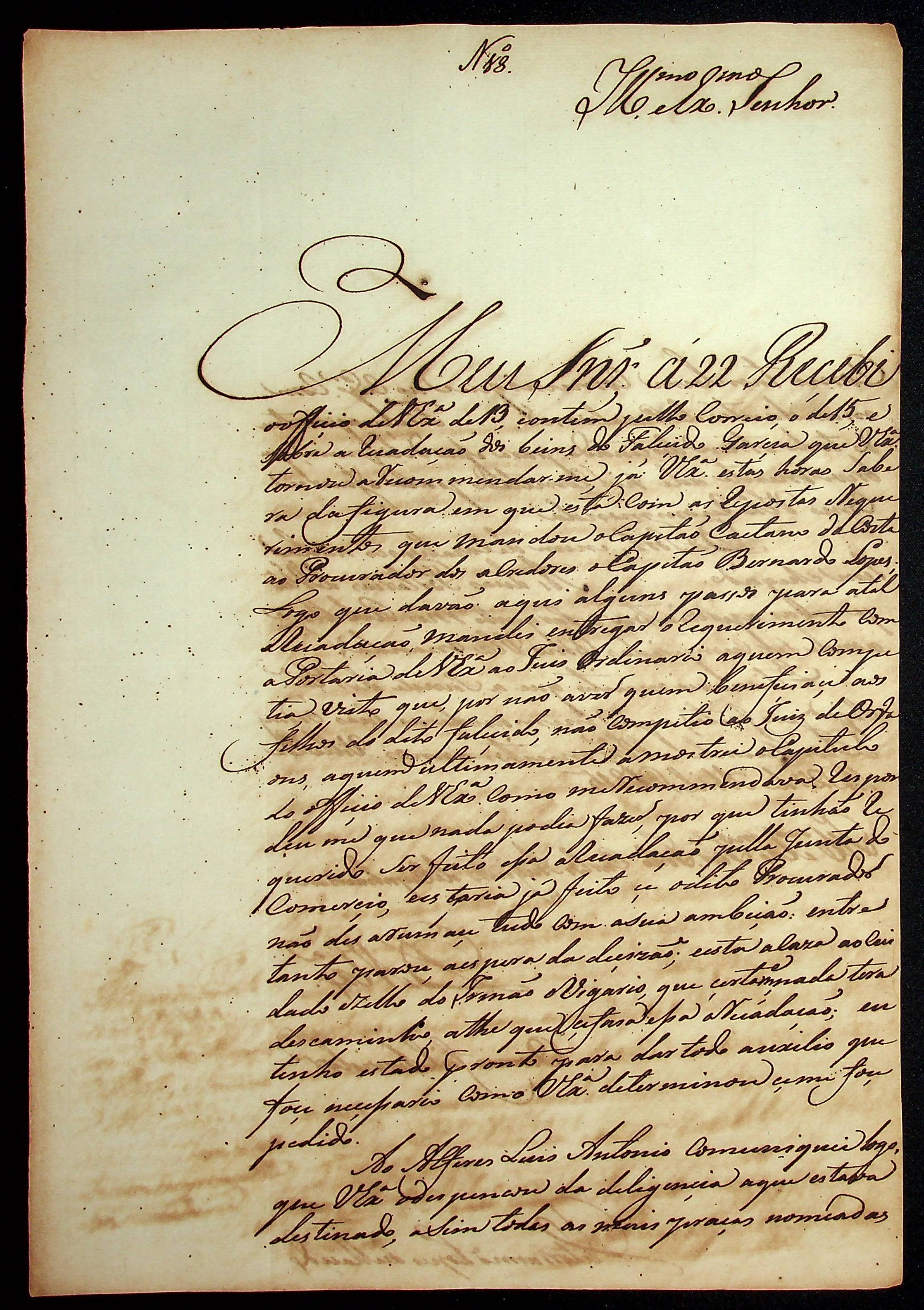 CARTA do [Tenente-Coronel] Vitoriano Lopes de Macedo ao [Governador e Capitão-General da Capitania de Mato Grosso] João Carlos Augusto d’Oeynhausen e Gravenberg.