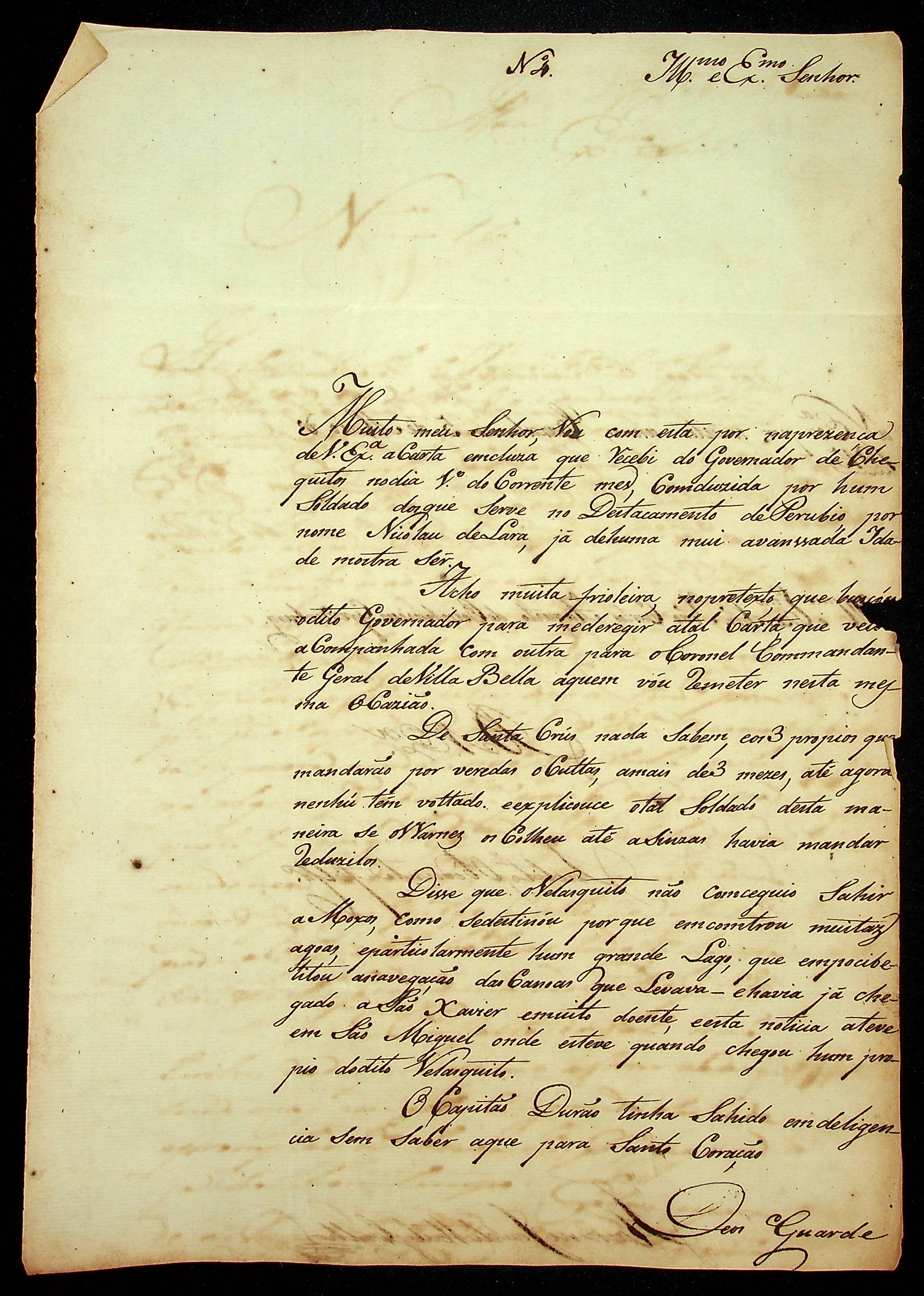 CARTA do [Capitão Comandante] Flaviano José de Matos Coelho ao [Governador e Capitão-General da Capitania de Mato Grosso] João Carlos Augusto d’Oeynhausen e Gravenberg.