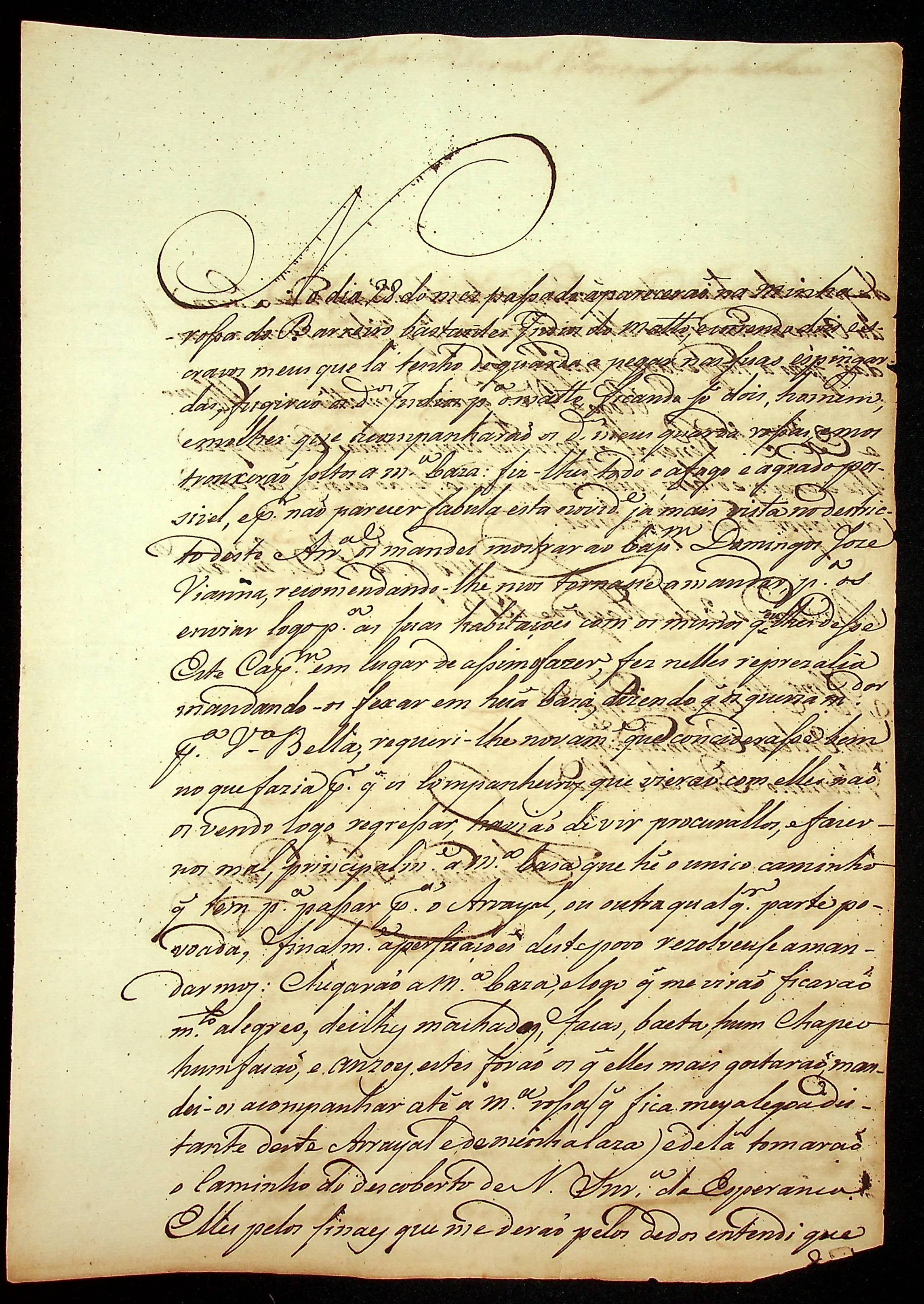 CARTA do [Tenente-Coronel] Vitoriano Lopes de Macedo ao [Governador e Capitão-General da Capitania de Mato Grosso] João Carlos Augusto d’Oeynhausen e Gravenberg.