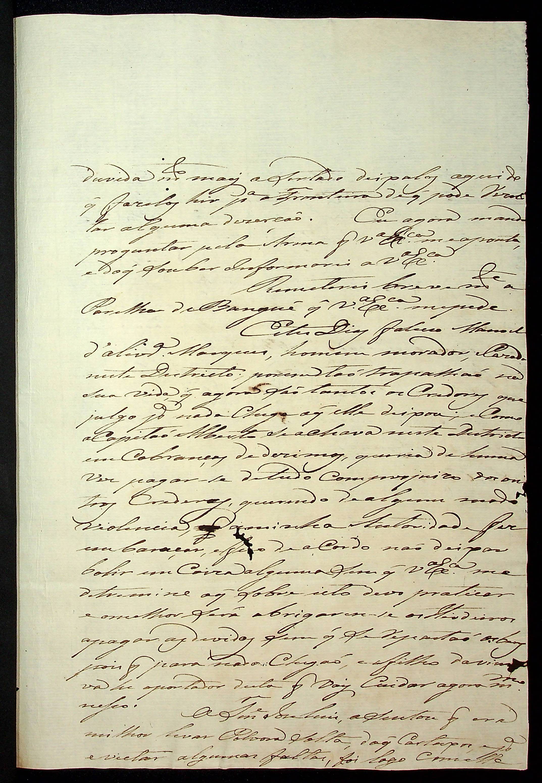 CARTA do [Major Comandante] João Pereira Leite ao [Governador e Capitão-General da Capitania de Mato Grosso] João Carlos Augusto d’Oeynhausen e Gravenberg.