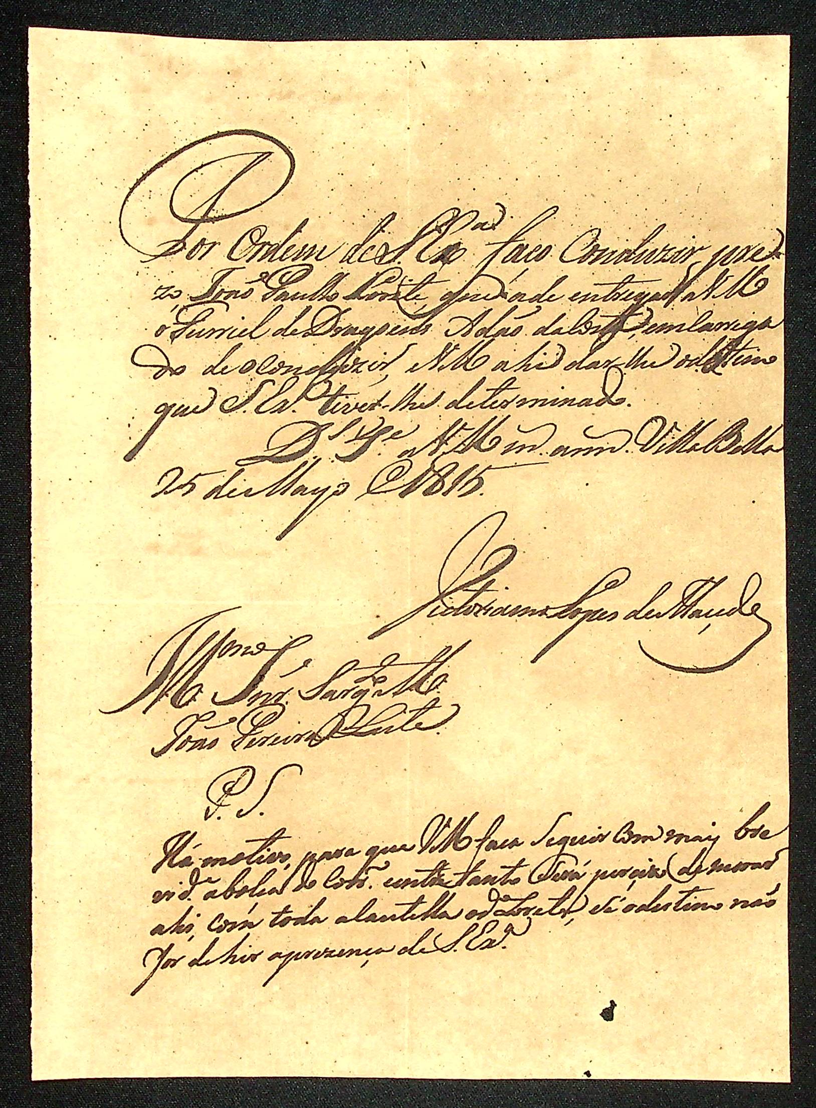CARTA do [Tenente-Coronel] Victoriano Lopes de Macedo ao Sargento-mor João Pereira Leite.
