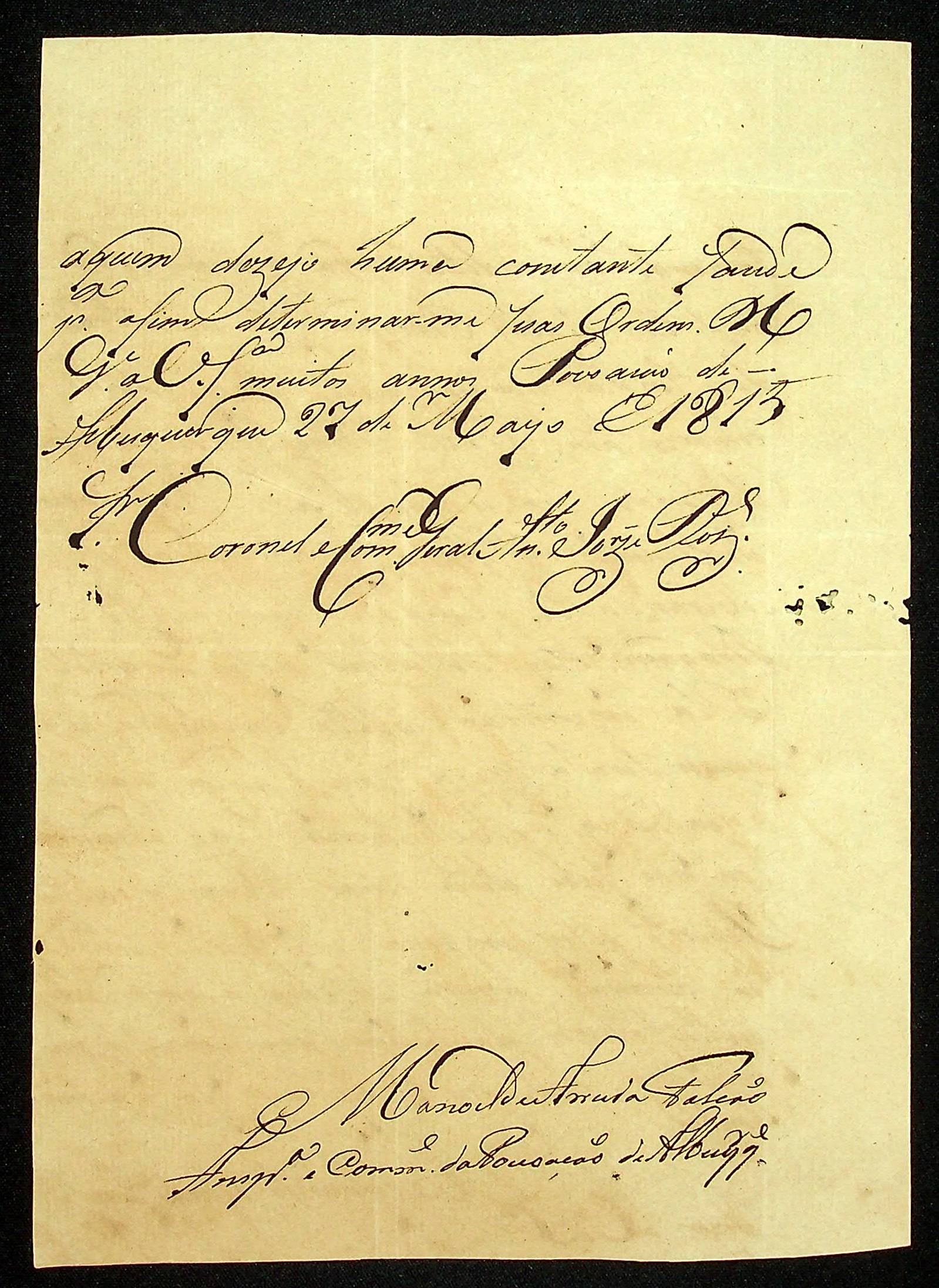 CARTA do Anspeçada e Comandante da Povoação de Albuquerque Manoel Arruda Falcão ao Coronel Comandante Geral Antônio José Rodrigues.