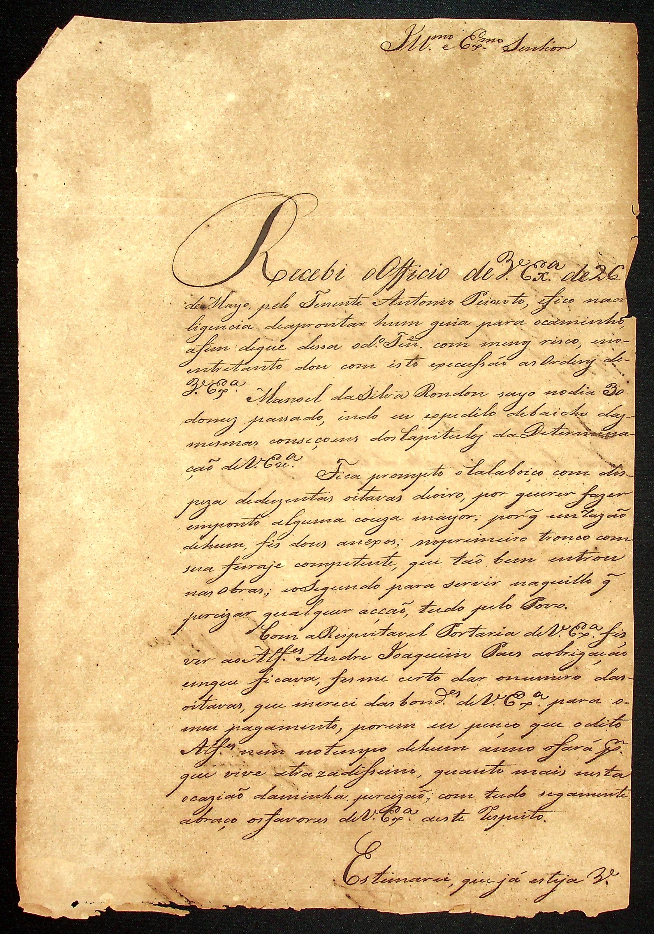 CARTA de [Francisco Xavier Ribeiro] ao [Governador e Capitão-General da Capitania de Mato Grosso] João Carlos Augusto d’Oeynhausen e Gravenberg.