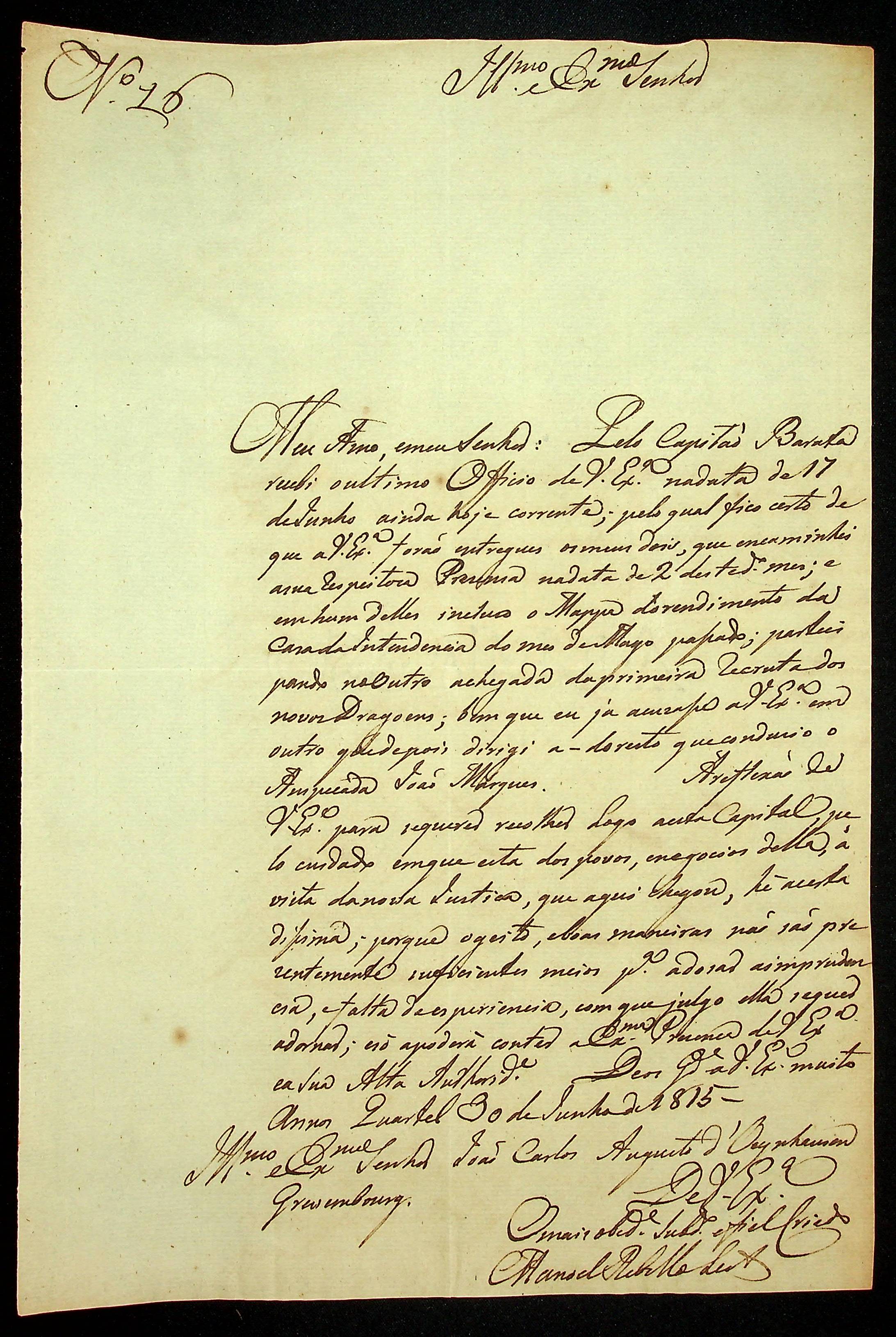 CARTA do [Sargento-mor] Manoel [Rabelo] Leite ao [Governador e Capitão-General da Capitania de Mato Grosso] João Carlos Augusto d’Oeynhausen e Gravenberg.