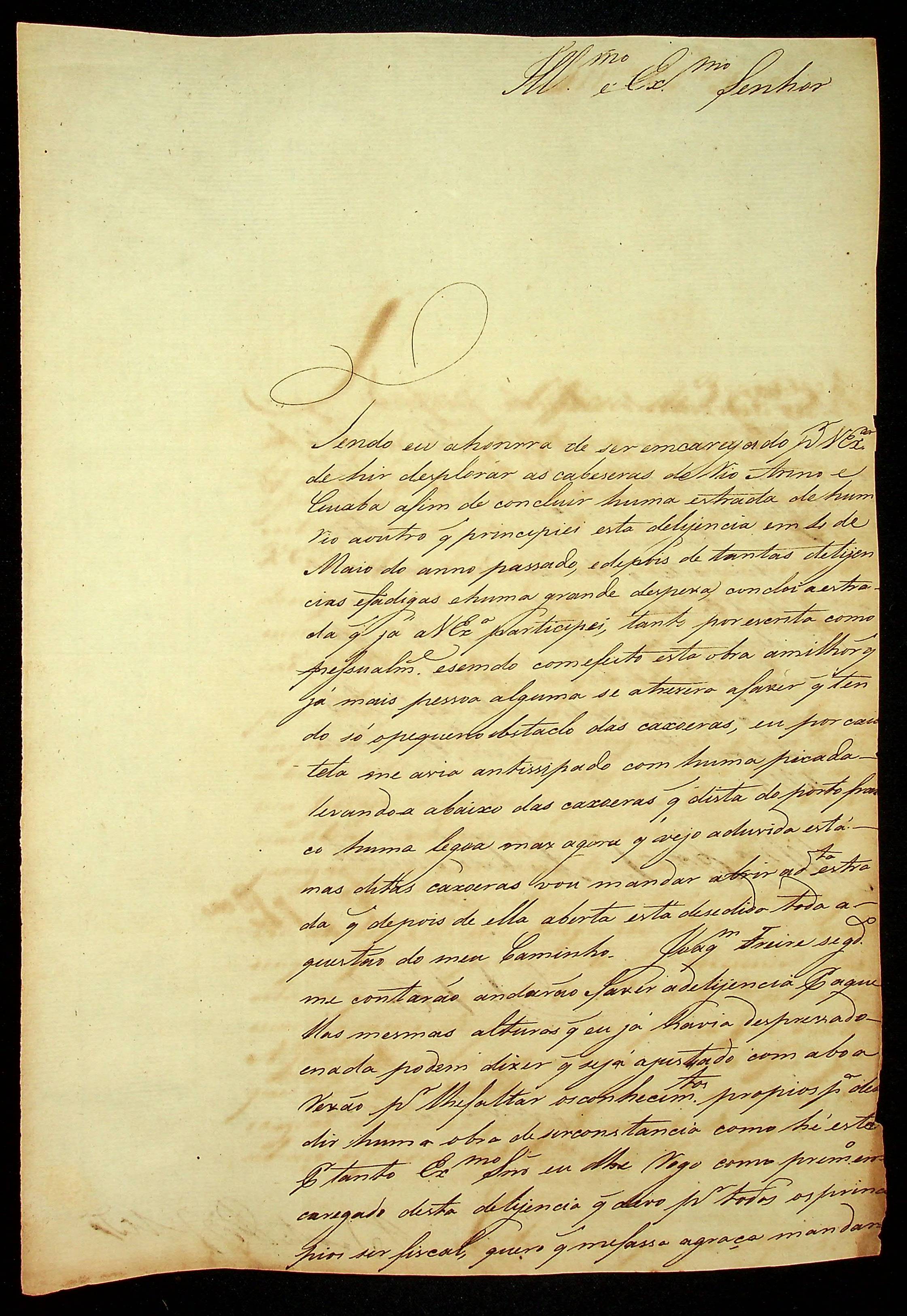 CARTA de Bento Pires de Miranda ao [Governador e Capitão-General da Capitania de Mato Grosso] João Carlos Augusto d’Oeynhausen e Gravenberg.
