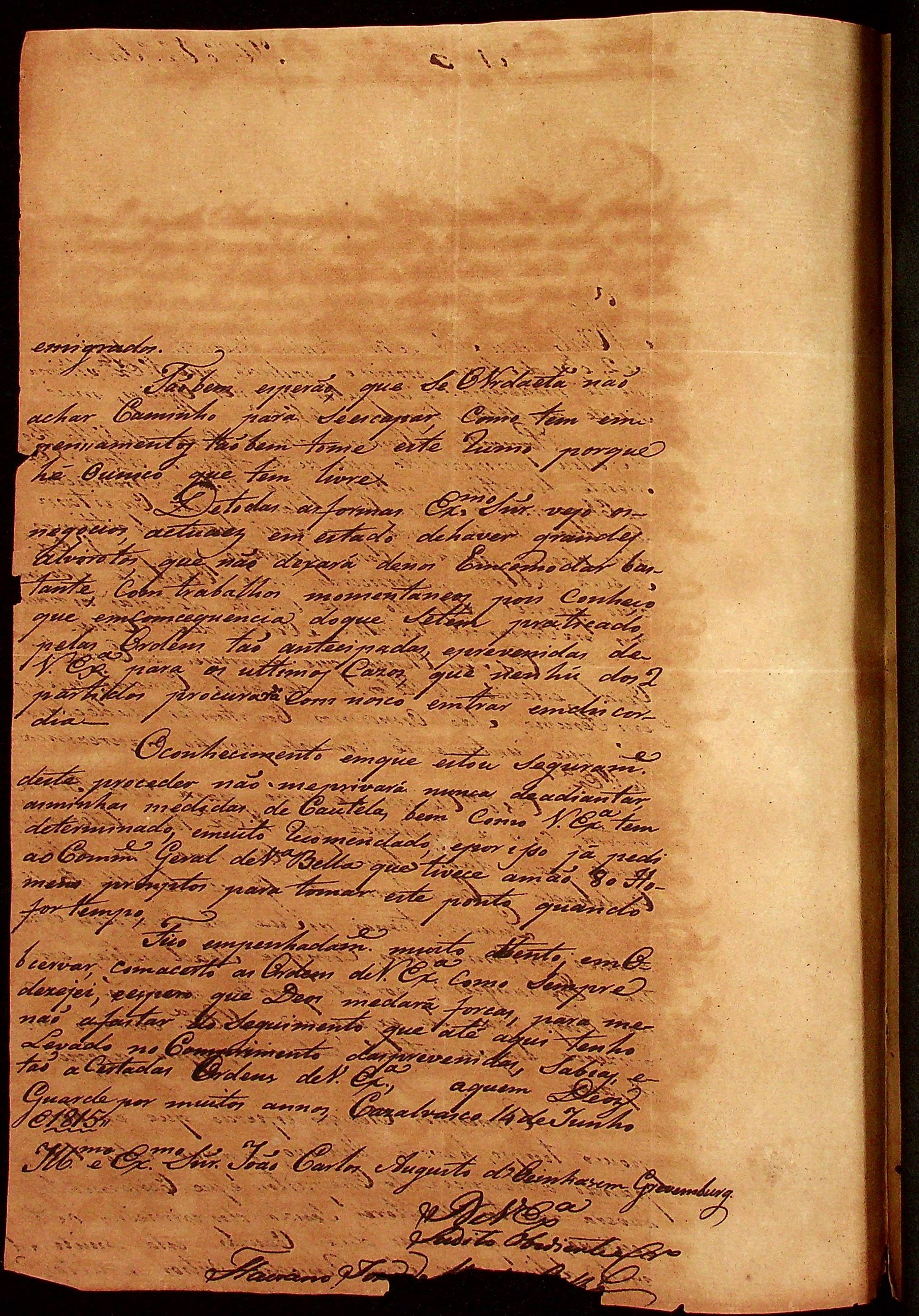 CARTA do [Capitão Comandante] Flaviano José de Matos Coelho ao [Governador e Capitão-General da Capitania de Mato Grosso] João Carlos Augusto d’Oeynhausen e Gravenberg.