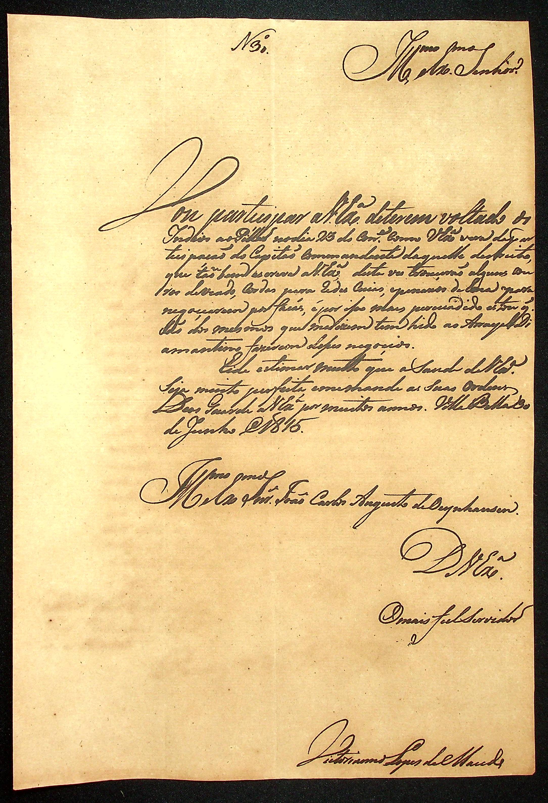 CARTA do [Tenente-Coronel] Victoriano Lopes de Macedo ao [Governador e Capitão-General da Capitania de Mato Grosso] João Carlos Augusto d’Oeynhausen e Gravenberg.