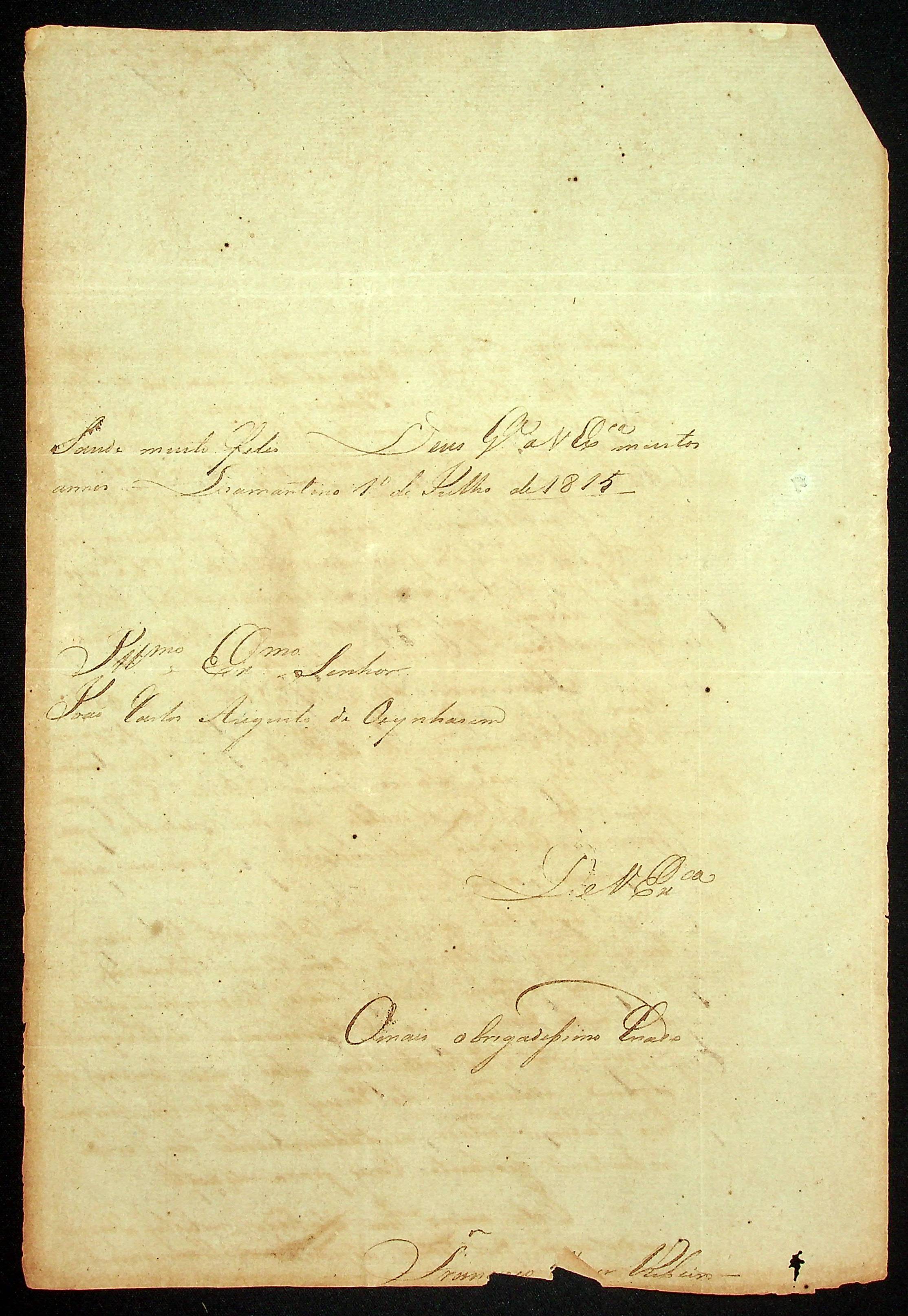 CARTA de Francisco Xavier Ribeiro ao [Governador e Capitão-General da Capitania de Mato Grosso] João Carlos Augusto d’Oeynhausen e Gravenberg.