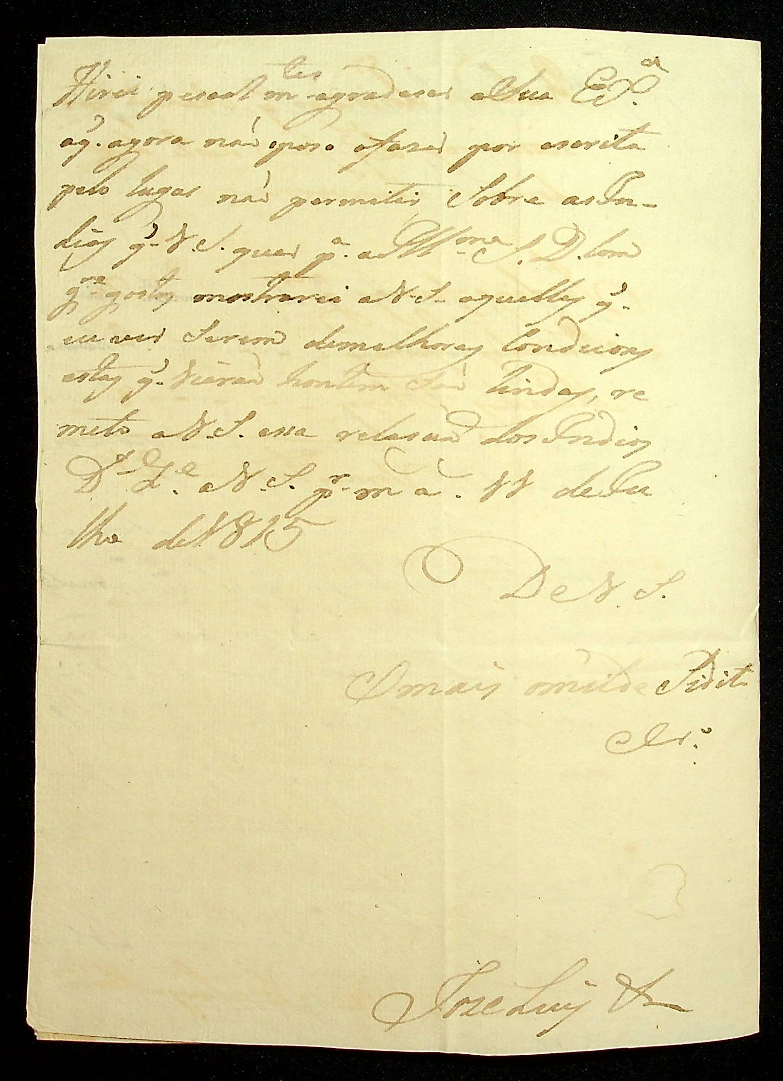 CARTA de José Luiz Monteiro ao Sargento-mor Comandante João Pereira Leite.