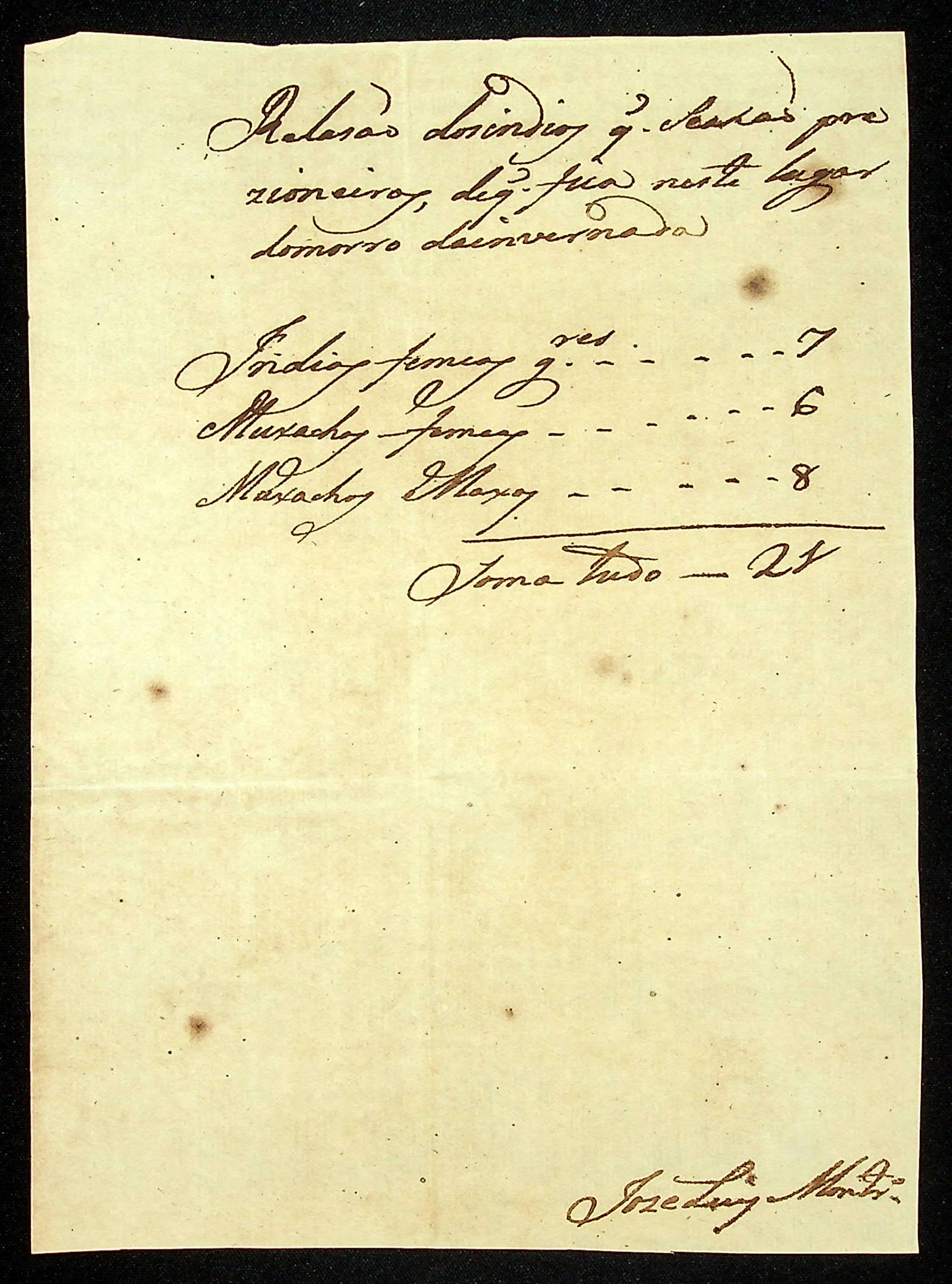 CARTA de José Luiz Monteiro ao Sargento-mor Comandante João Pereira Leite.