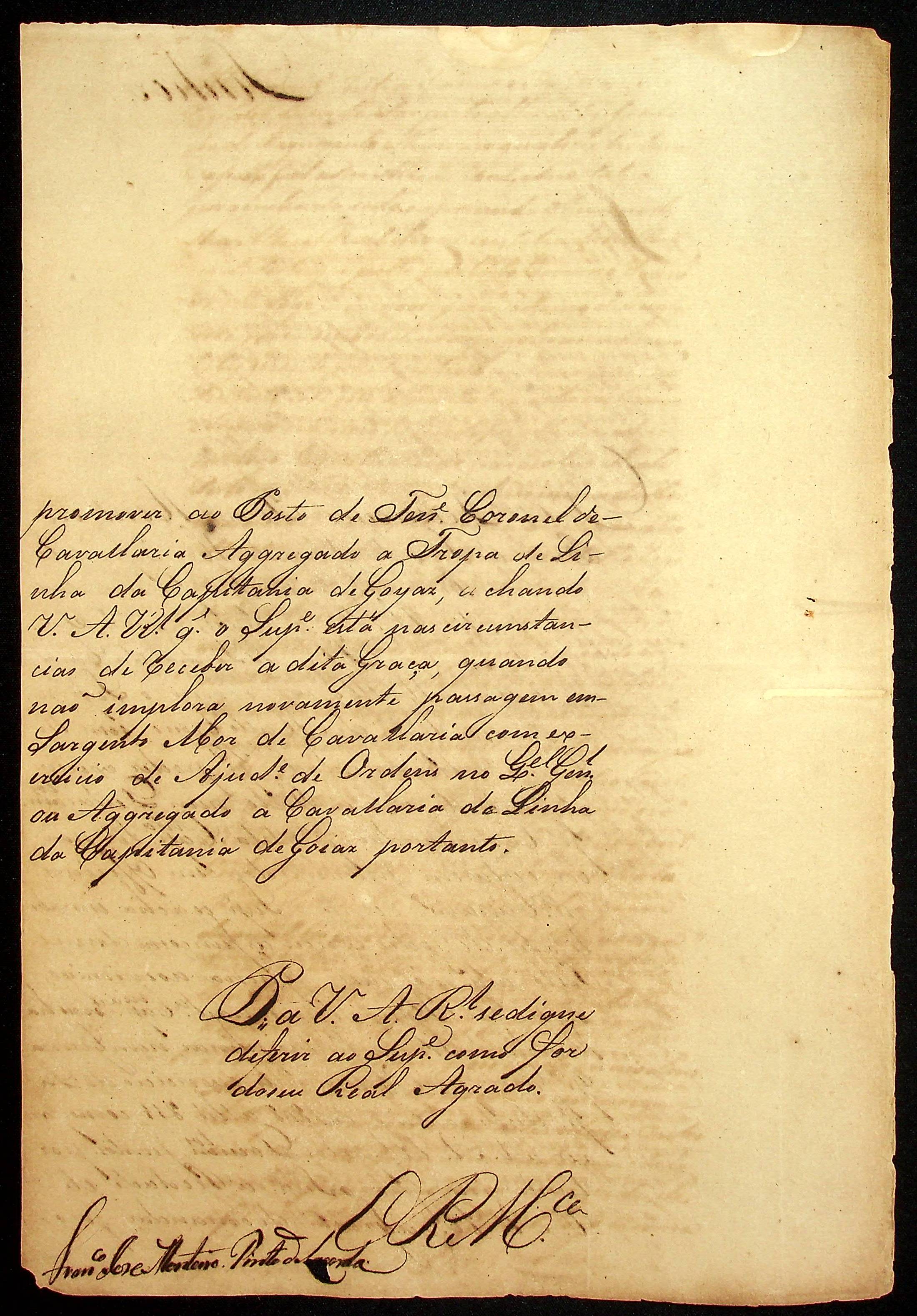 CARTA do [Sargento-mor agregado à Tropa de Linha da Cavalaria de Mato Grosso] José Monteiro Pinto de Lacerda ao [Governador e Capitão-General da Capitania de Mato Grosso] João Carlos Augusto d’Oeynhausen e Gravenberg.