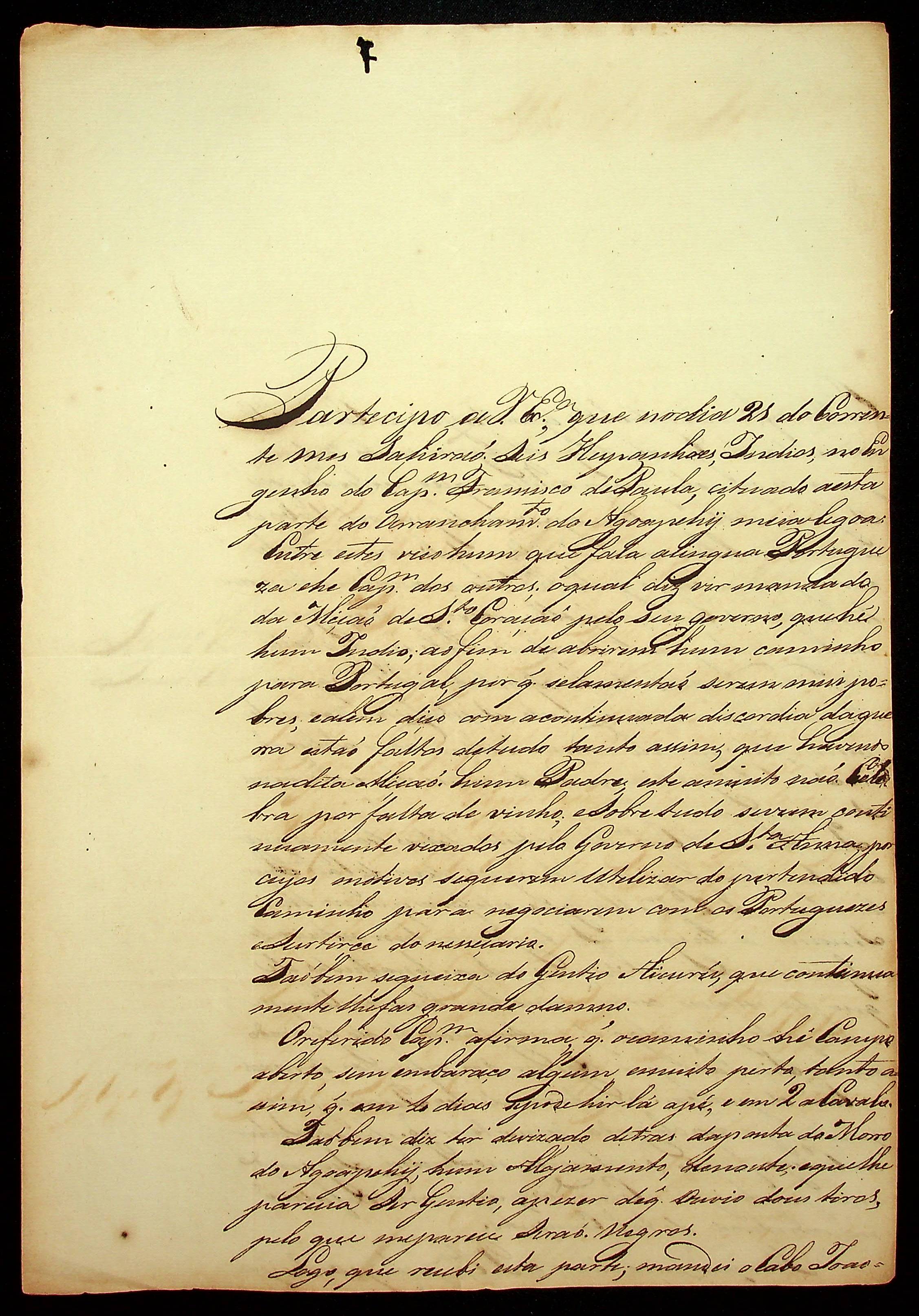 CARTA de Constantino Ribeiro da Fonseca ao [Governador e Capitão-General da Capitania de Mato Grosso] João Carlos Augusto d’Oeynhausen e Gravenberg.