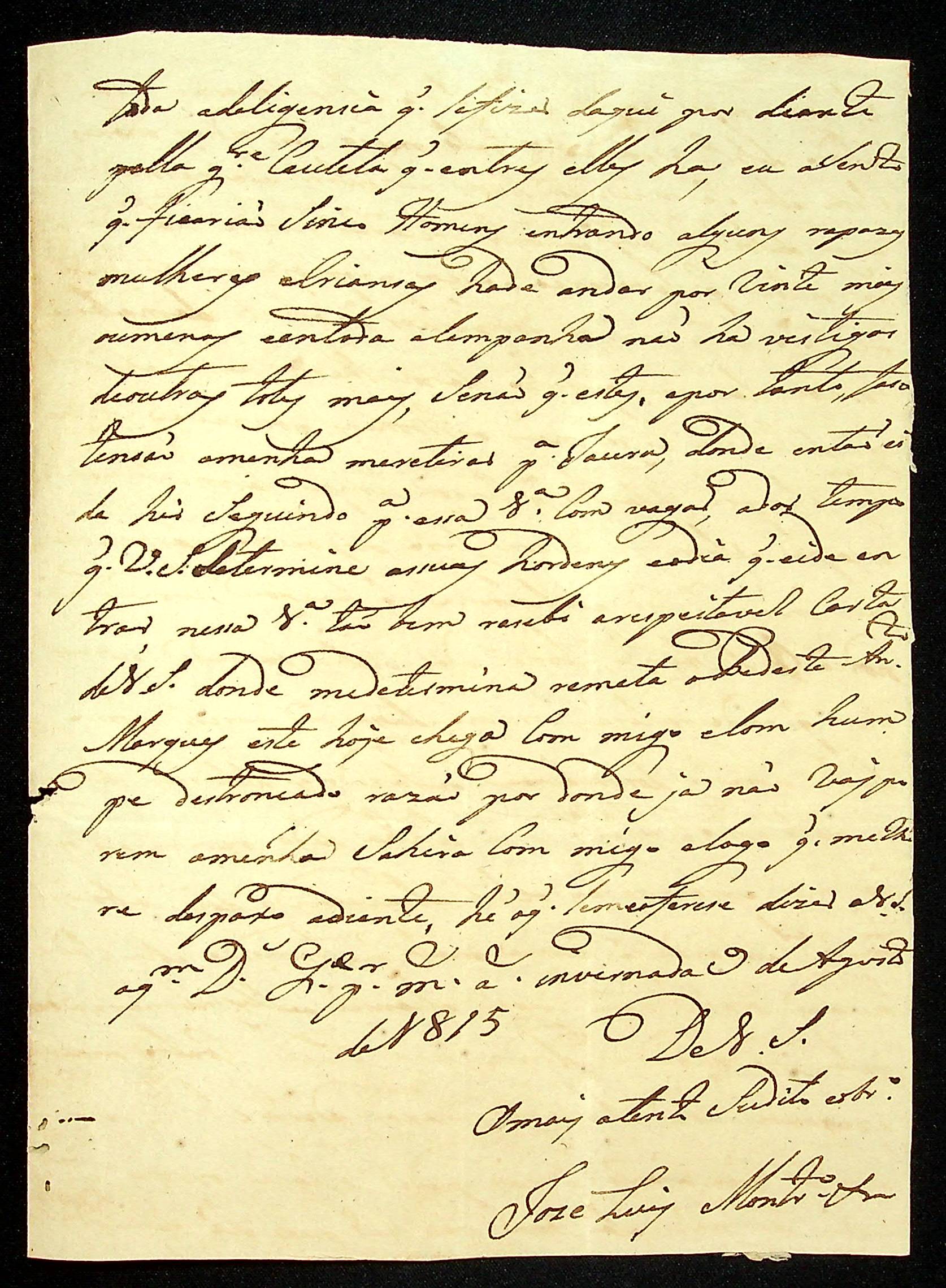 CARTA José Luiz Monteiro ao Sargento-mor e Comandante João Pereira Leite.