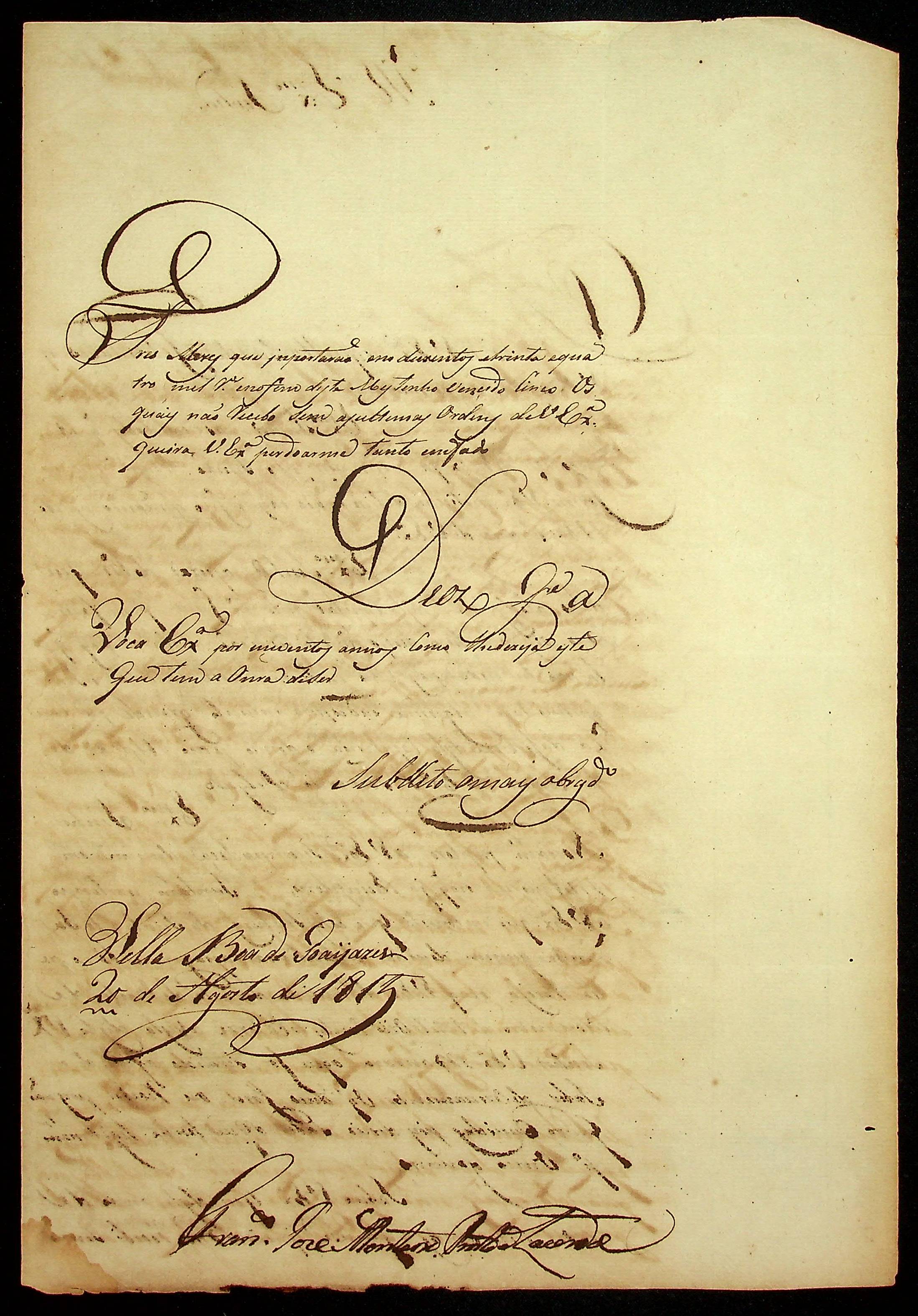 CARTA [Sargento-mor agregado à Tropa de Linha da Cavalaria de Mato Grosso] Francisco José Monteiro Pinto de Lacerda ao [Governador e Capitão-General da Capitania de Mato Grosso] João Carlos Augusto d’Oeynhausen e Gravenberg.