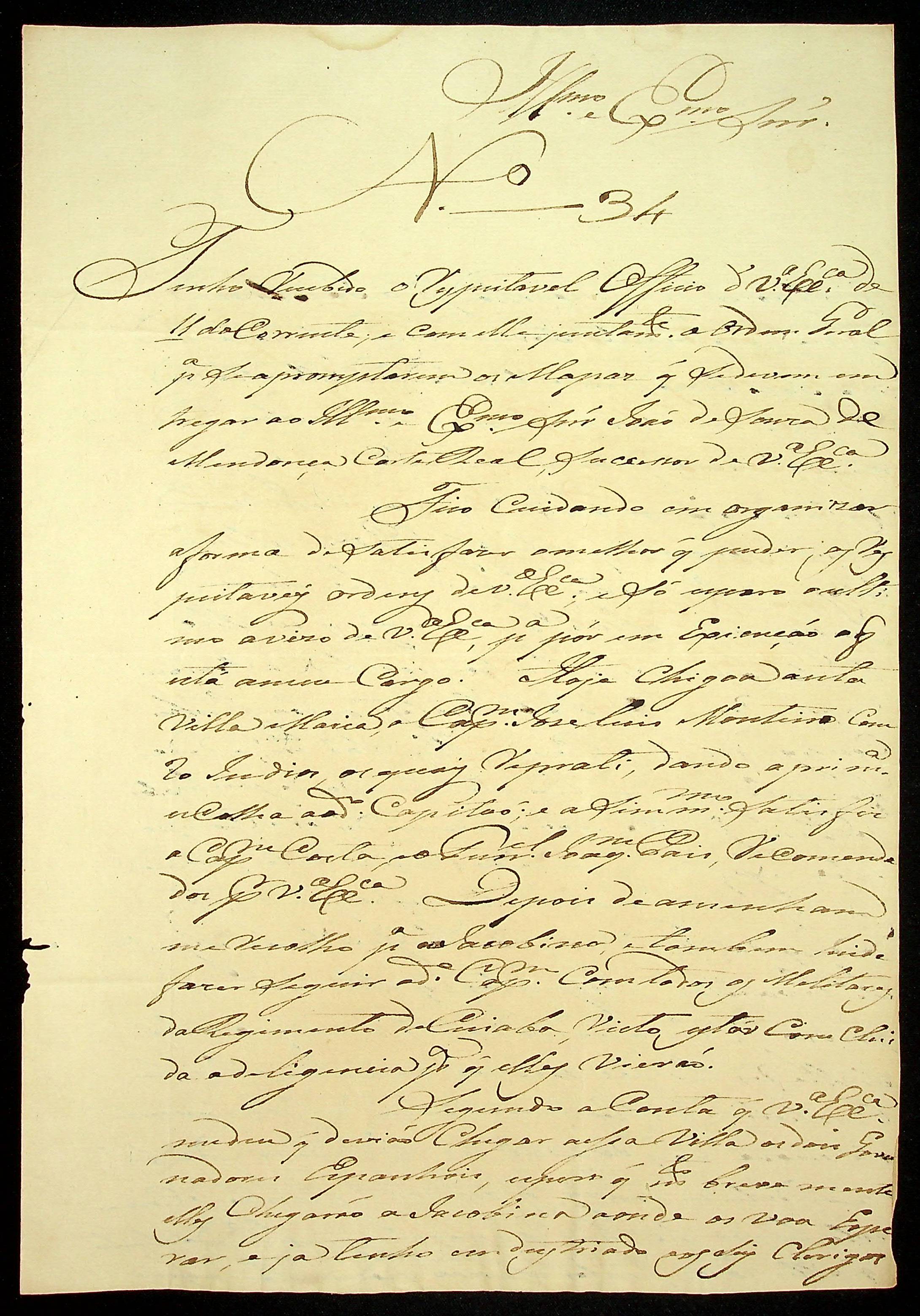 CARTA do [Sargento-mor] João Pereira Leite ao [Governador e Capitão-General da Capitania de Mato Grosso] João Carlos Augusto d’Oeynhausen e Gravenberg.