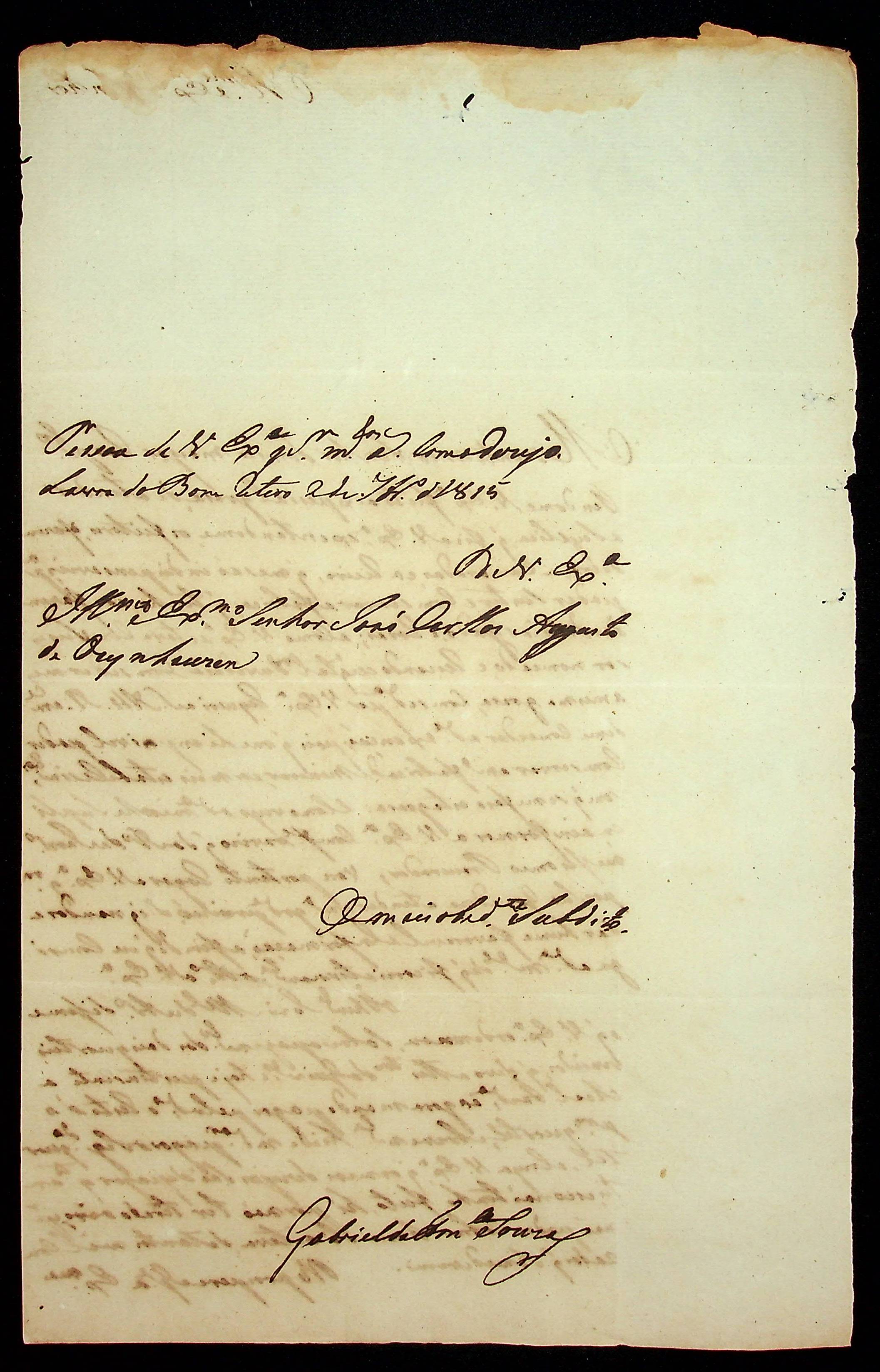 CARTA de Gabriel da Fonseca e Souza ao [Governador e Capitão-General da Capitania de Mato Grosso João Carlos Augusto d’Oeynhausen e Gravenberg].
