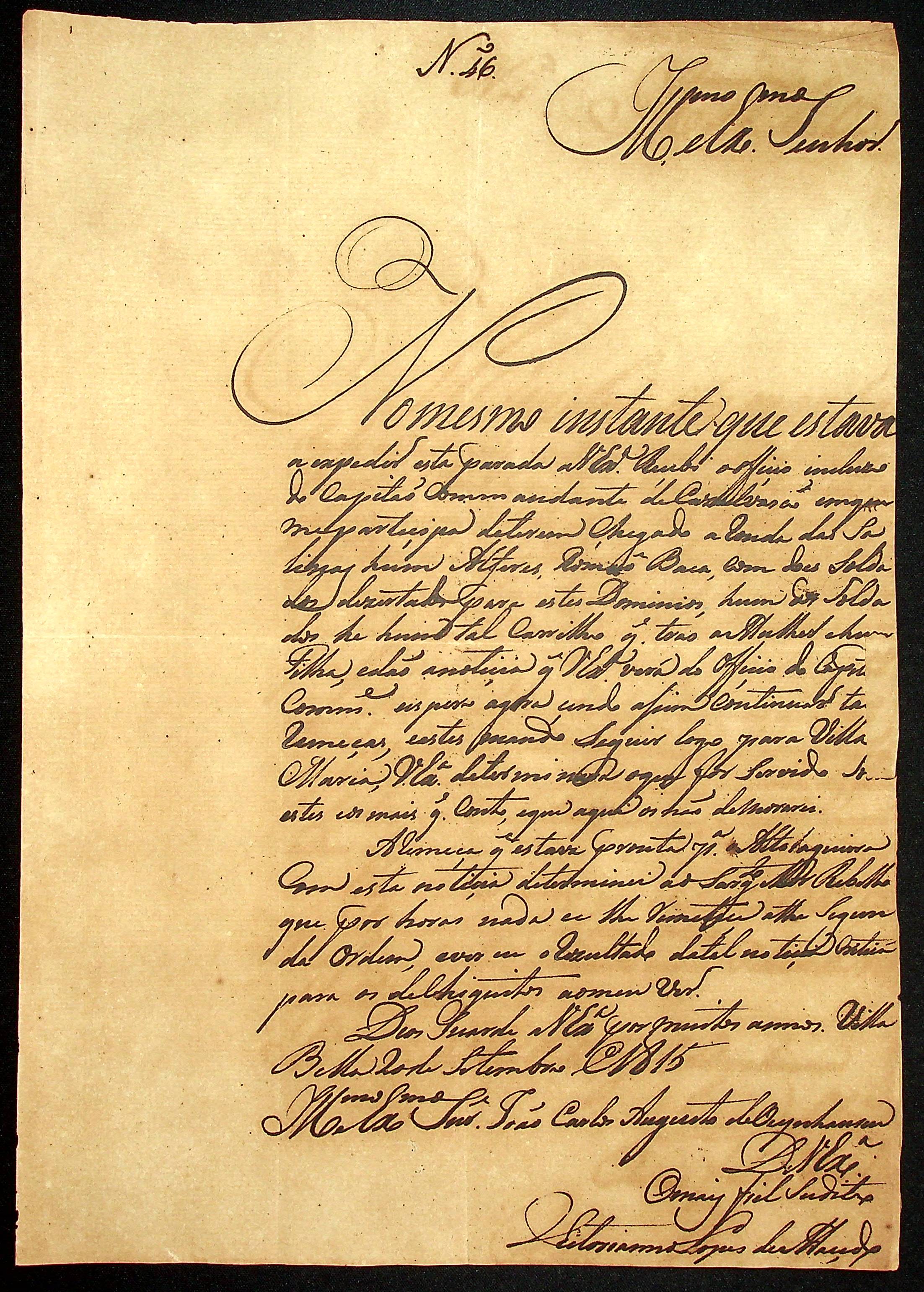 CARTA do [Coronel] Victoriano Lopes de Macedo ao [Governador e Capitão-General da Capitania de Mato Grosso] João Carlos Augusto d’Oeynhausen e Gravenberg.