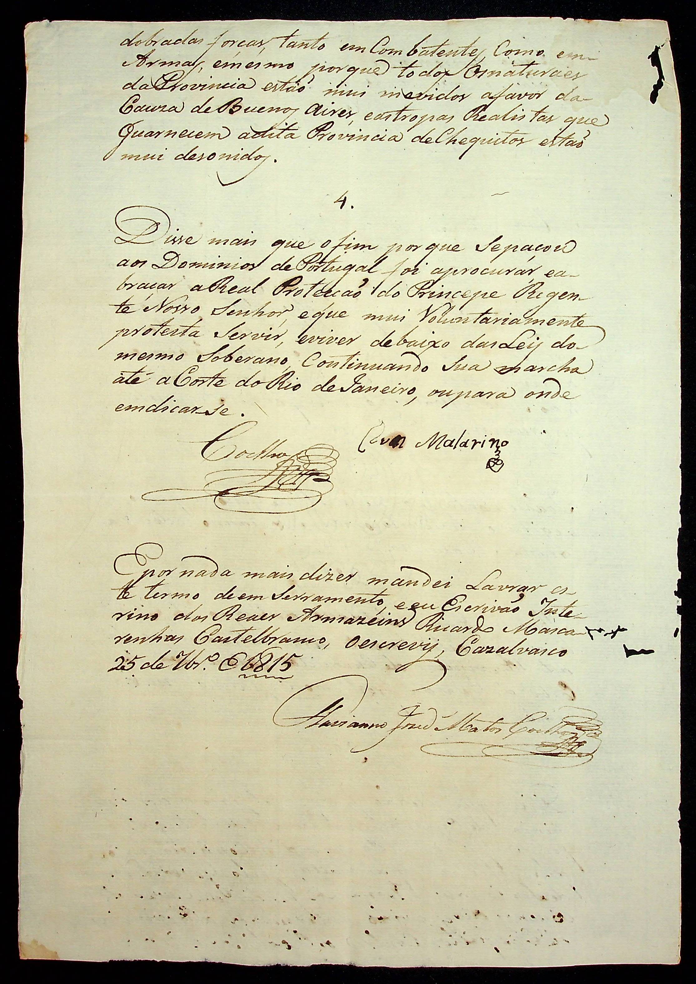 CARTA do Comandante de Casalvasco Flaviano José de Matos Coelho ao Coronel Comandante Geral Victoriano Lopes de Macedo.