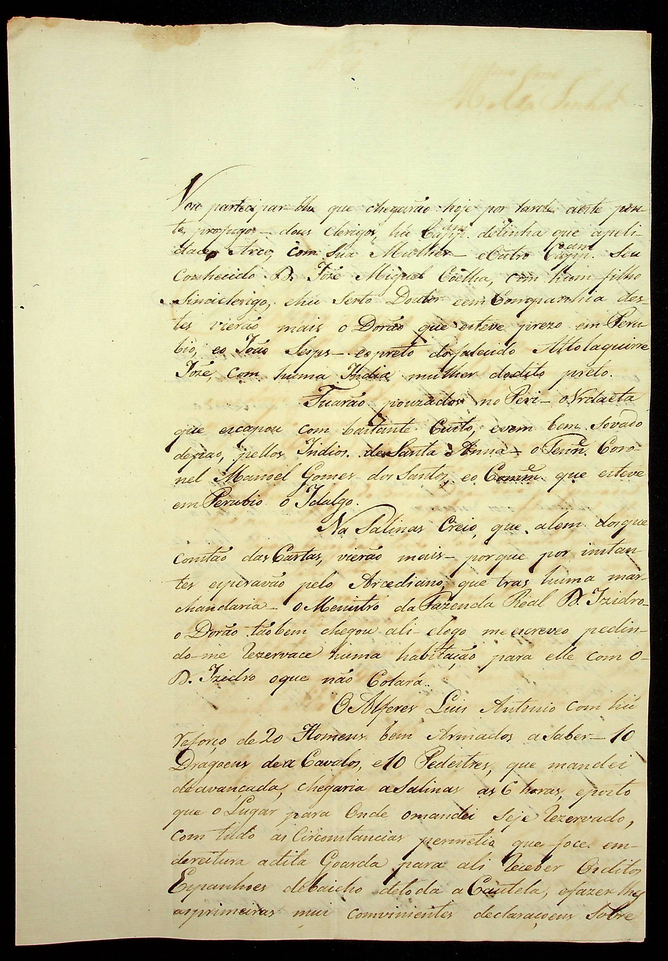 CARTA do Comandante de Casalvasco Flaviano José de Matos Coelho ao Coronel Comandante Geral Victoriano Lopes Macedo.