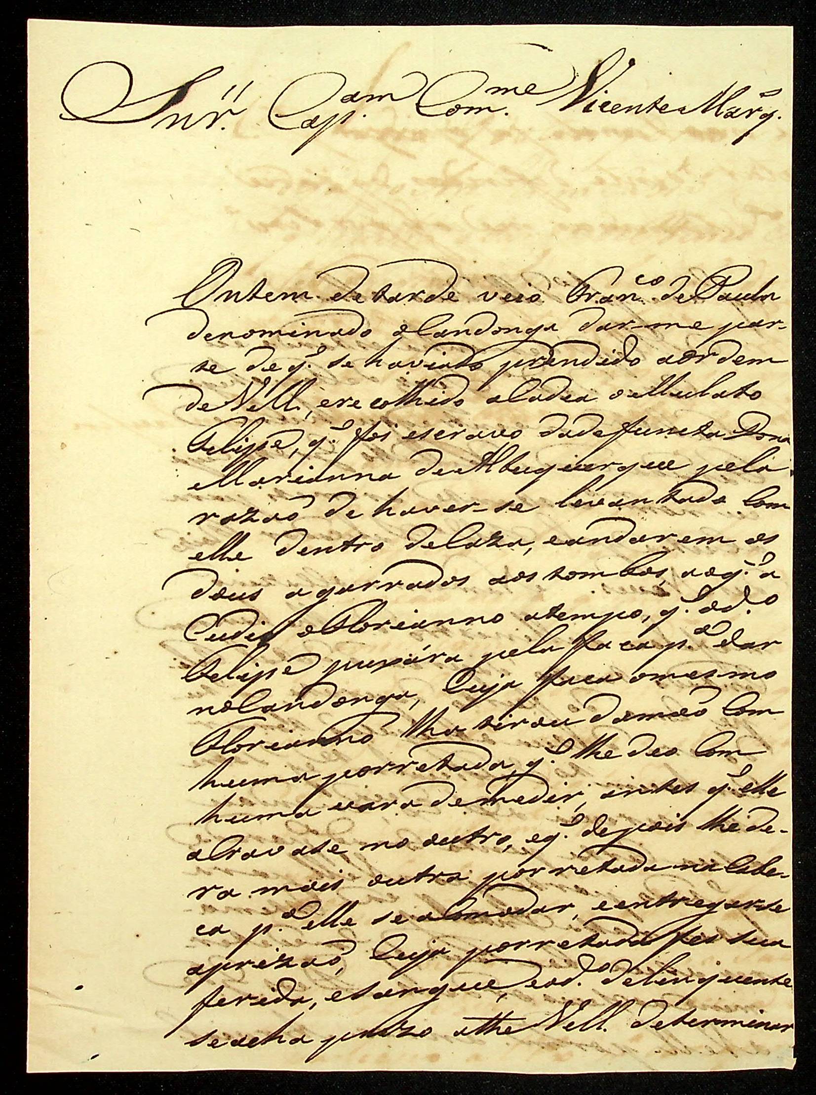 CARTA de Antônio Novaes da Silva ao Capitão Comandante Vicente Marques.