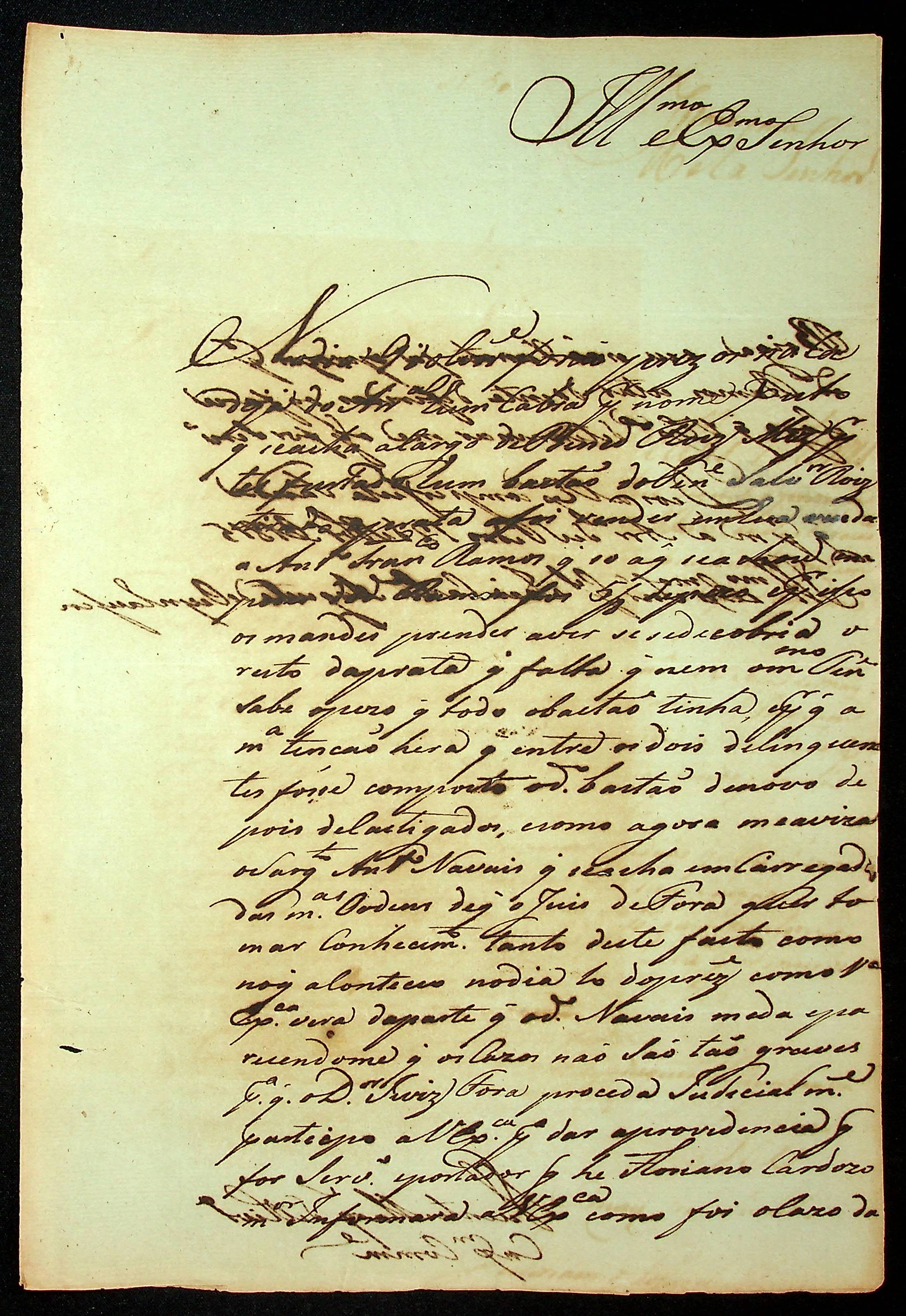 CARTA do Capitão Comandante Vicente Marques de Oliveira ao [Governador e Capitão-General da Capitania de Mato Grosso] João Carlos Augusto d’Oeynhausen e Gravenberg.