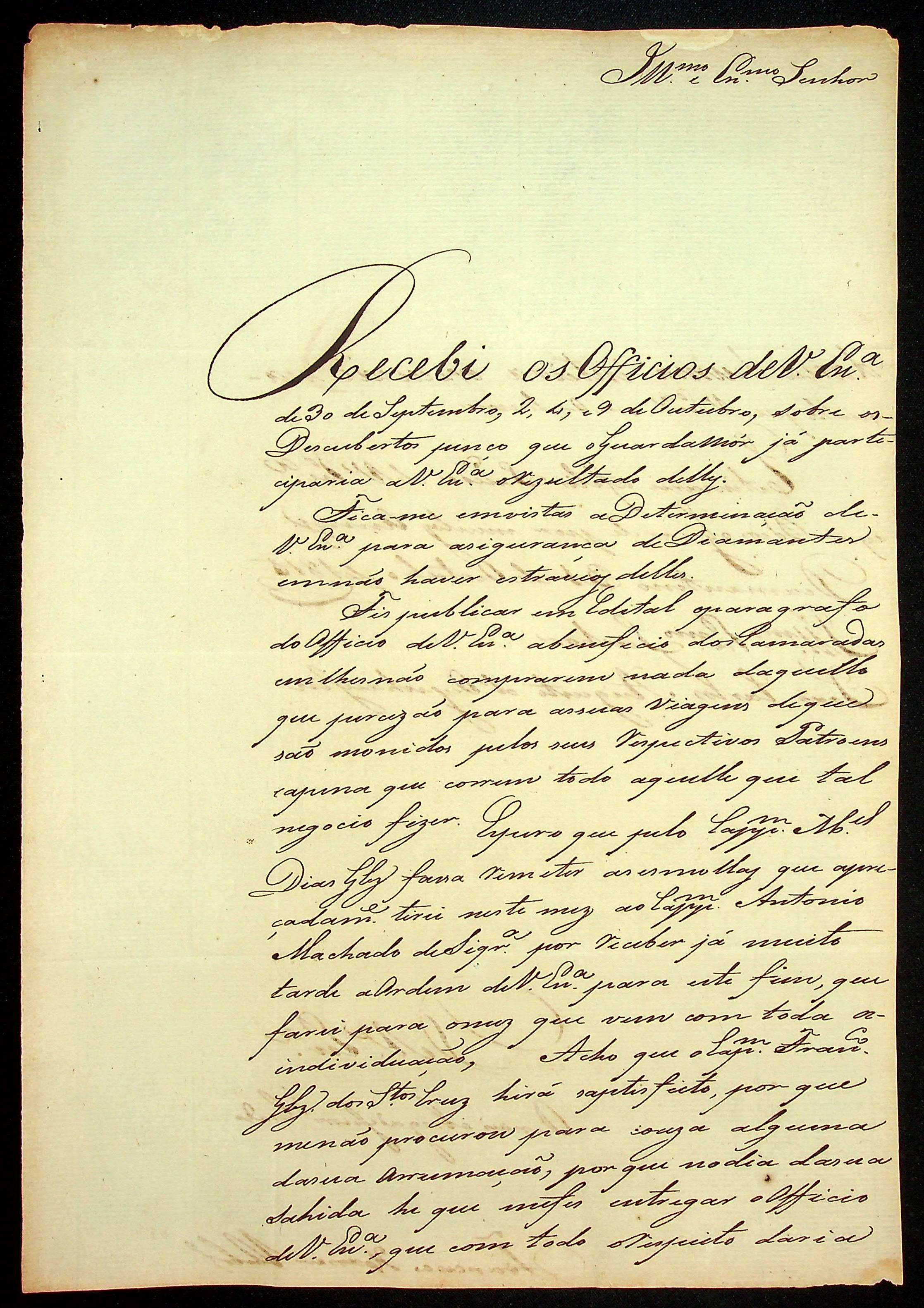 CARTA de Francisco Xavier Ribeiro ao [Governador e Capitão-General da Capitania de Mato Grosso] João Carlos Augusto d’Oeynhausen e Gravenberg.