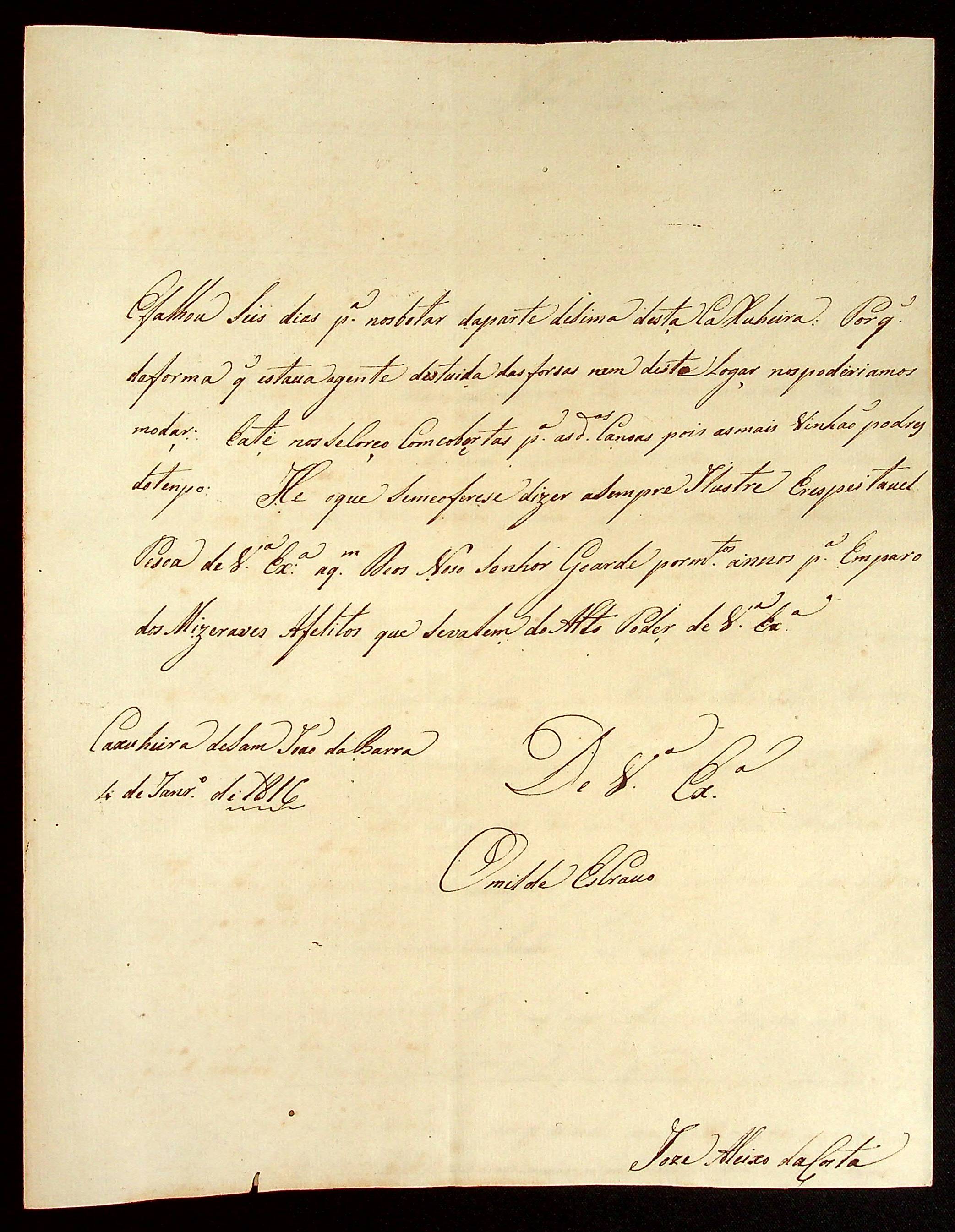 CARTA do [Alferes] José Aleixo da Costa ao [Governador e Capitão-General da Capitania de Mato Grosso] João Carlos Augusto d’Oeynhausen e Gravenberg.