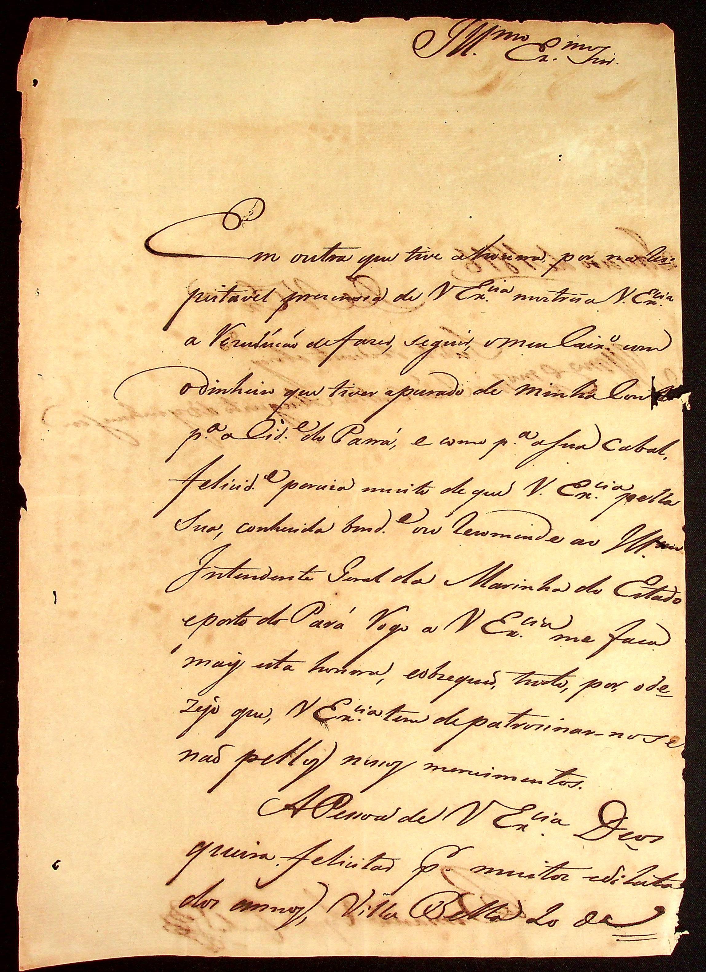 CARTA do [Capitão] Bernardo Lopes da Cunha ao [Governador e Capitão-General da Capitania de Mato Grosso] João Carlos Augusto d’Oeynhausen e Gravenberg.