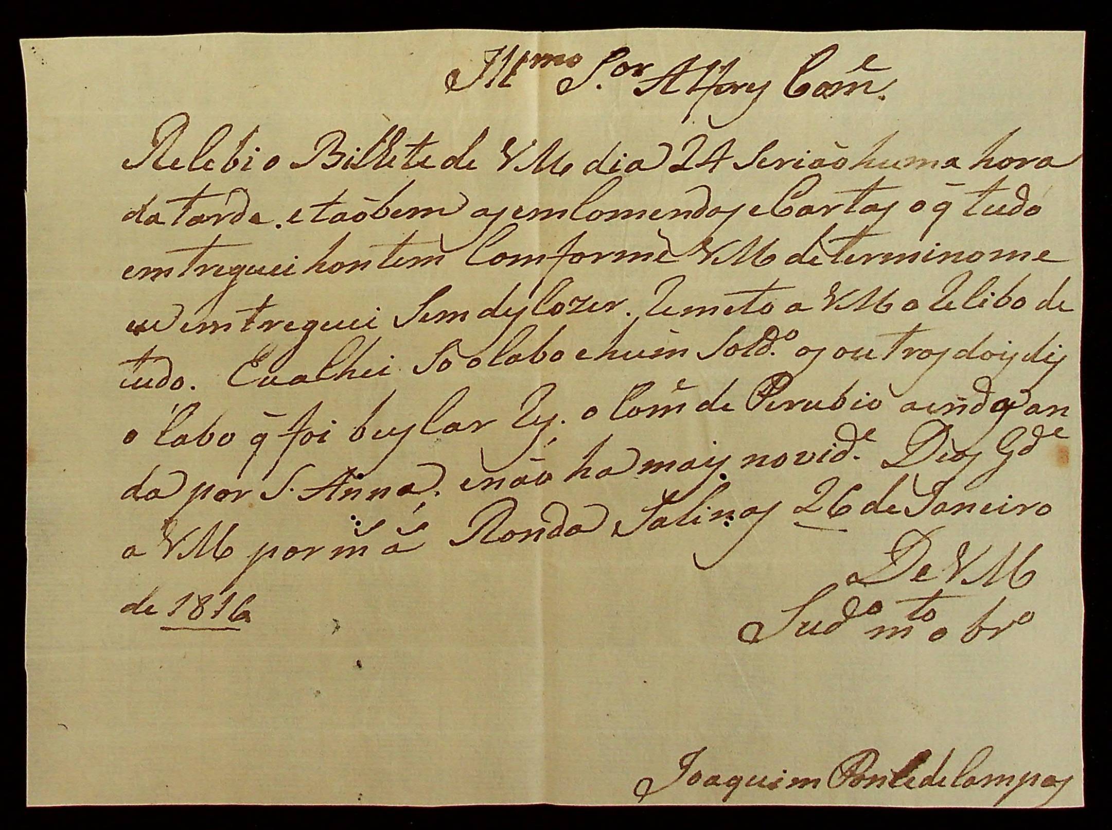 CARTA do Cabo de Dragões Joaquim Ponte de Campos ao Alferes Comandante […].