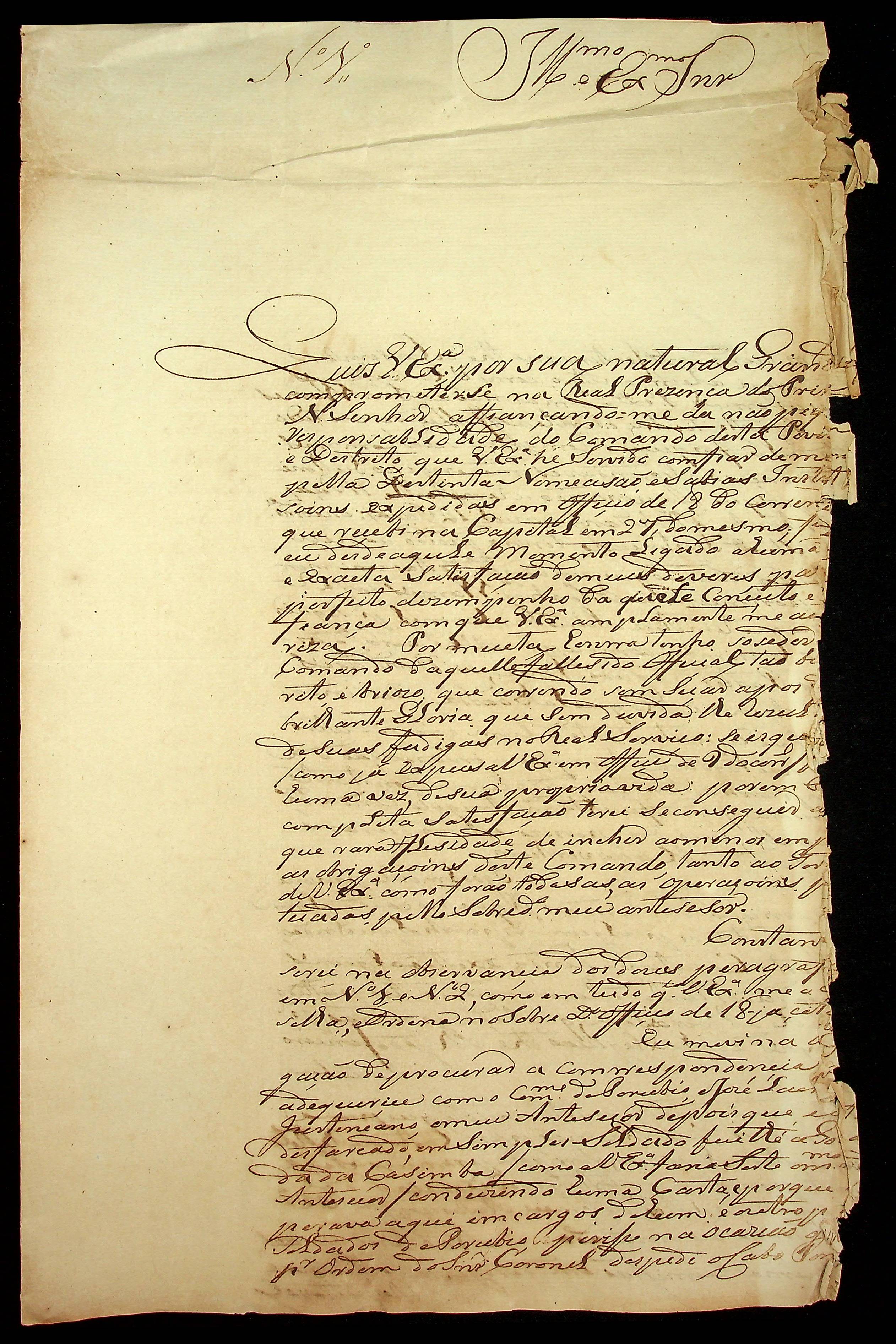 CARTA do [Alferes Comandante] Luiz Antônio de Souza ao [Governador e Capitão-General da Capitania de Mato Grosso] João Carlos Augusto d’Oeynhausen e Gravenberg.