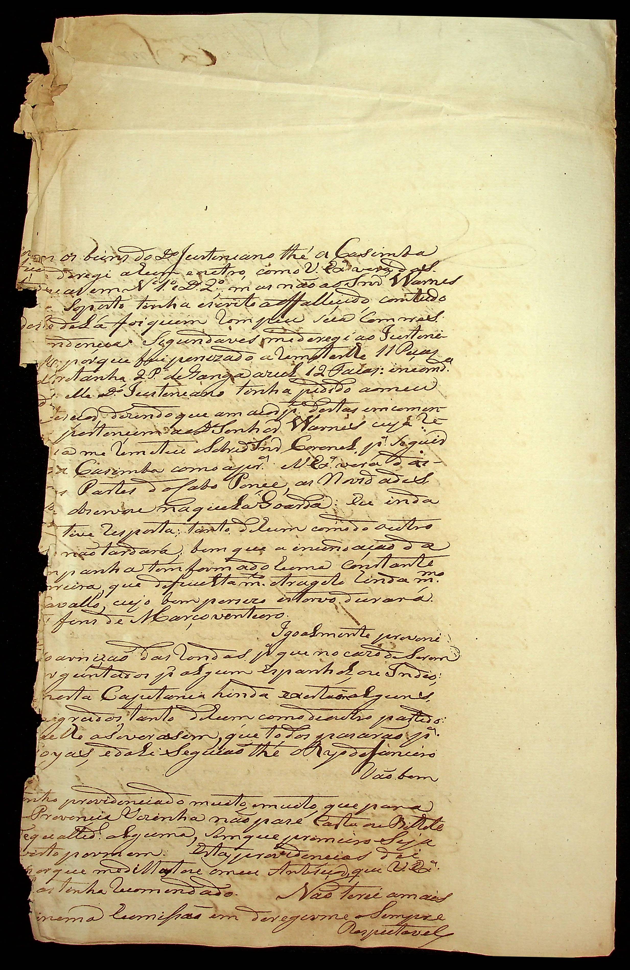 CARTA do [Alferes Comandante] Luiz Antônio de Souza ao [Governador e Capitão-General da Capitania de Mato Grosso] João Carlos Augusto d’Oeynhausen e Gravenberg.