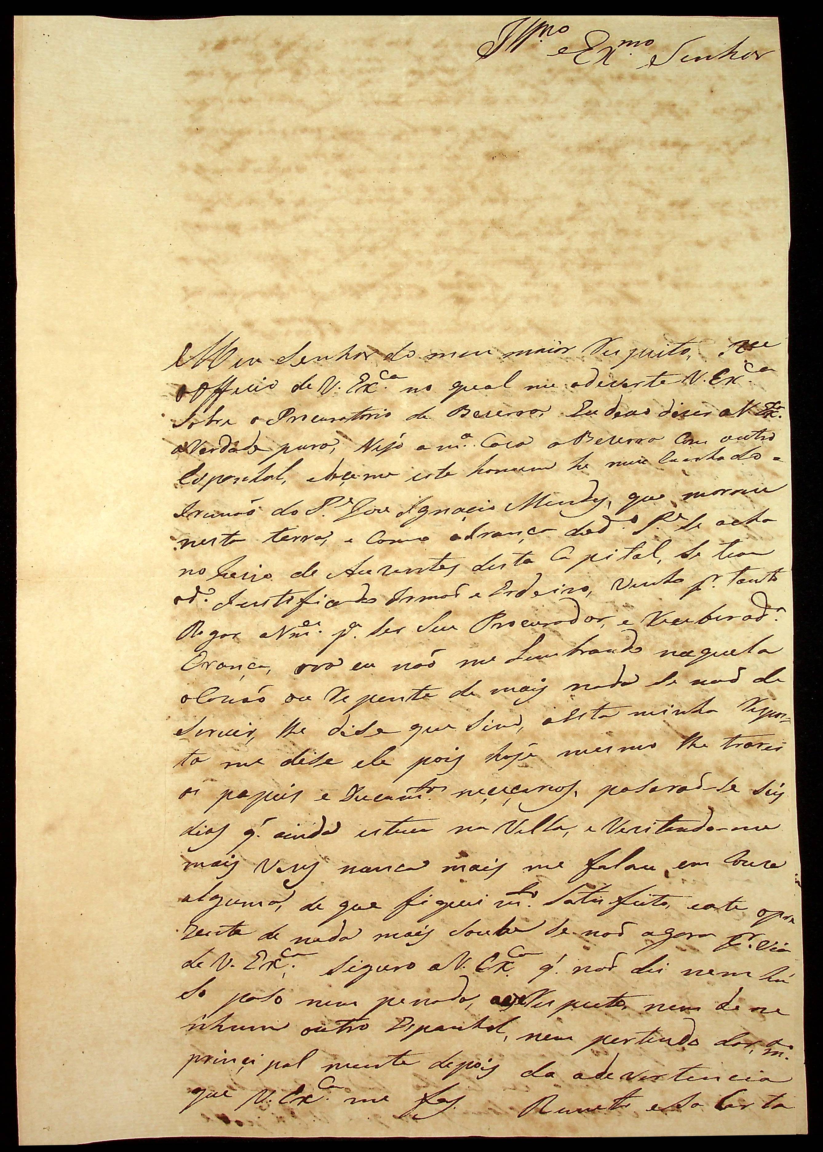 CARTA de Antônio Joaquim de Vasconcelos Pinto ao [Governador e Capitão-General da Capitania de Mato Grosso] João Carlos Augusto d’Oeynhausen e Gravenberg.