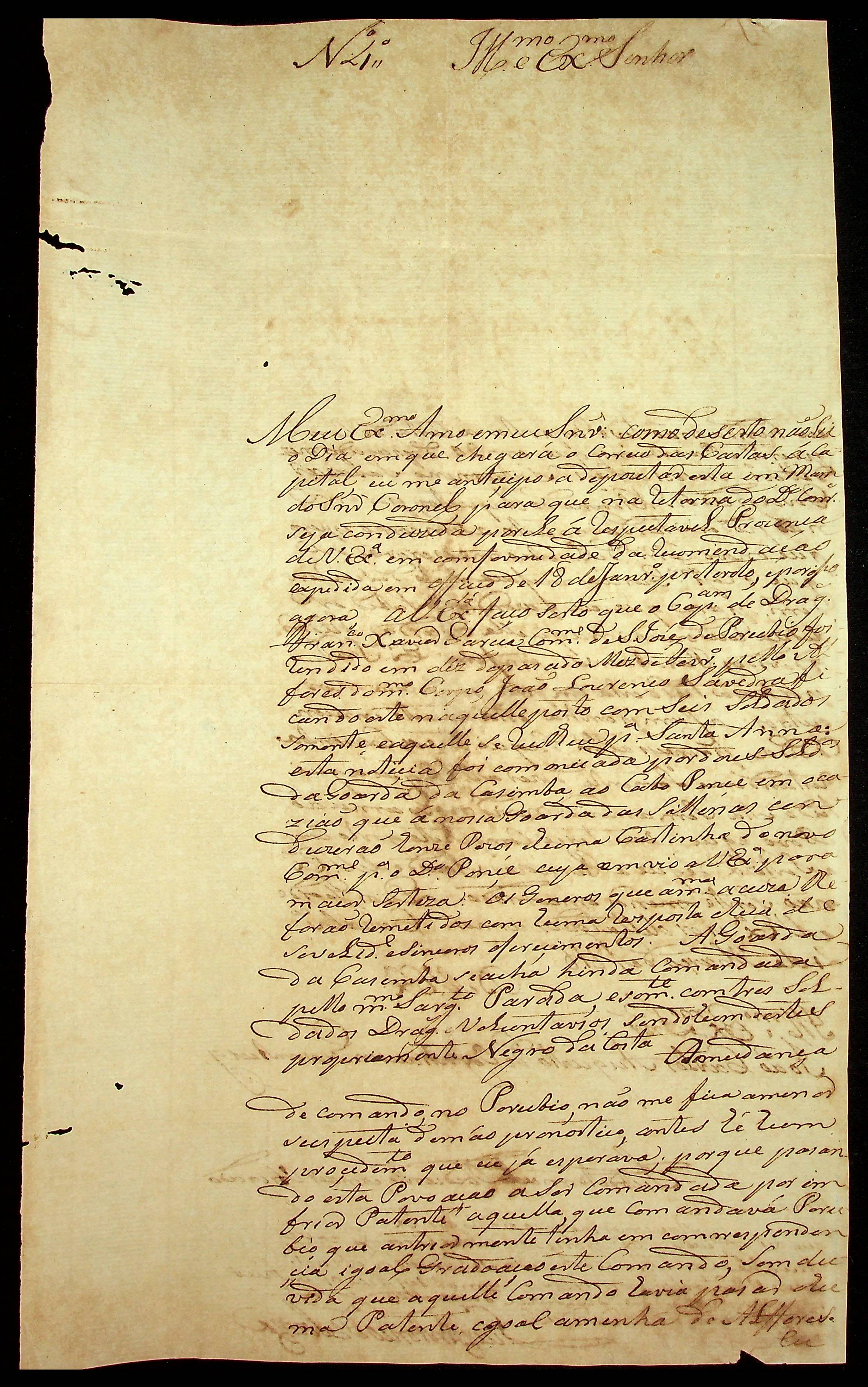 CARTA do [Alferes Comandante] Luiz Antônio de Souza ao [Governador e Capitão-General da Capitania de Mato Grosso] João Carlos Augusto d’Oeynhausen e Gravenberg.