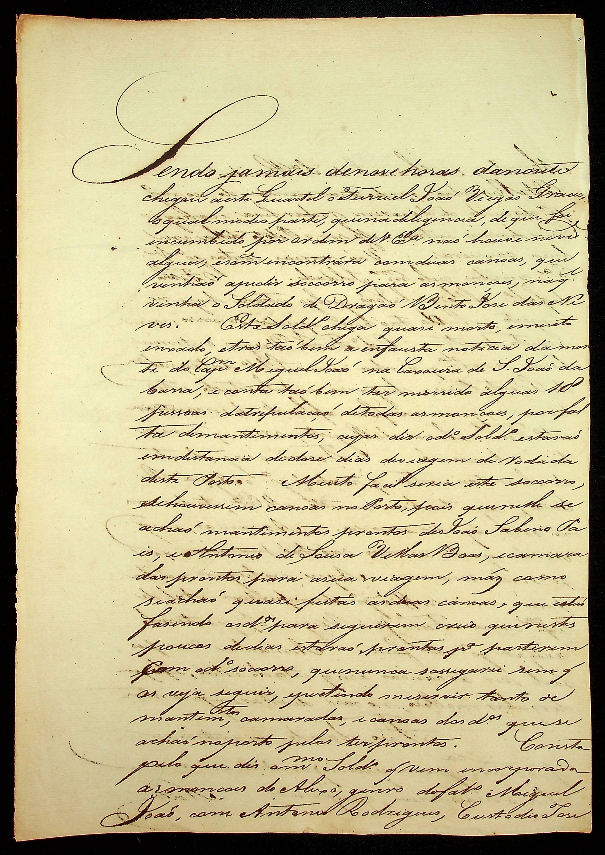 CARTA do Capitão Comandante João Poupino Caldas ao [Governador e Capitão-General da Capitania de Mato Grosso] João Carlos Augusto d’Oeynhausen e Gravenberg.