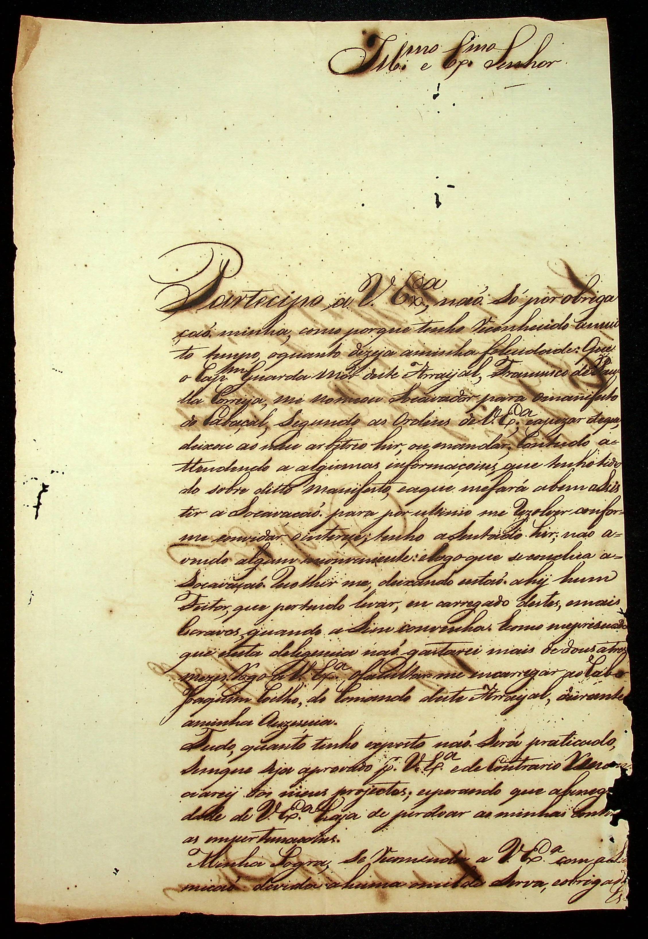 CARTA de Constantino Ribeiro da Fonseca ao [Governador e Capitão-General da Capitania de Mato Grosso] João Carlos Augusto d’Oeynhausen e Gravenberg.
