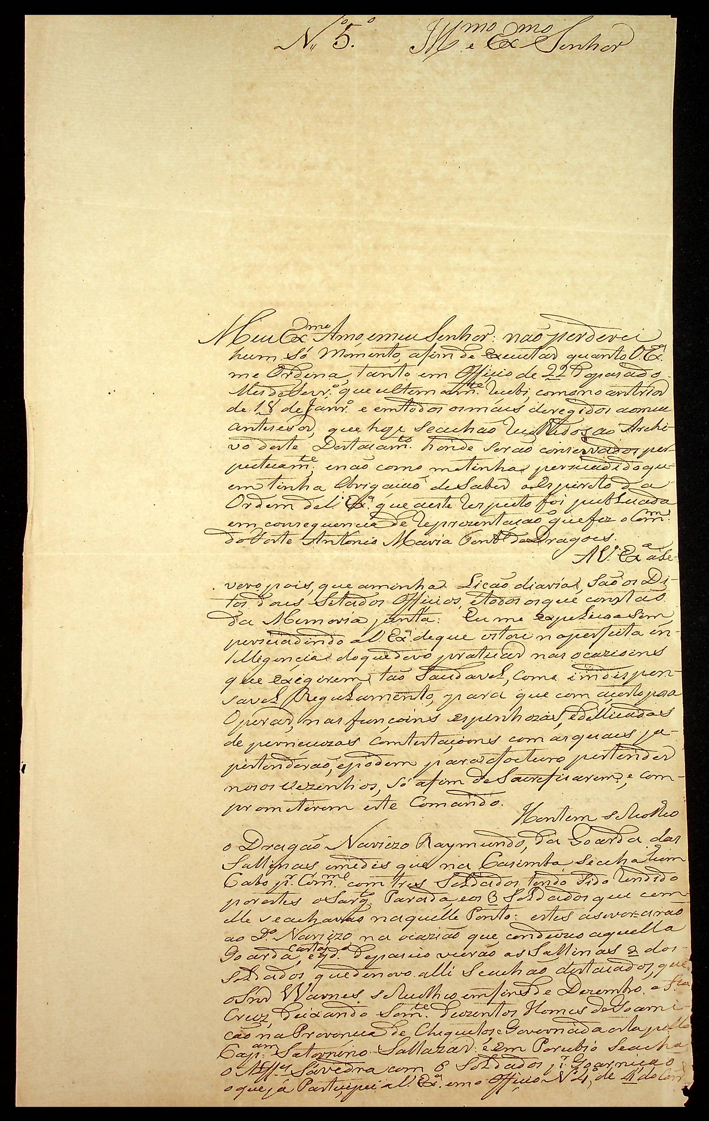 CARTA do [Alferes Comandante] Luiz Antônio de Souza ao [Governador e Capitão-General da Capitania de Mato Grosso] João Carlos Augusto d’Oeynhausen e Gravenberg.