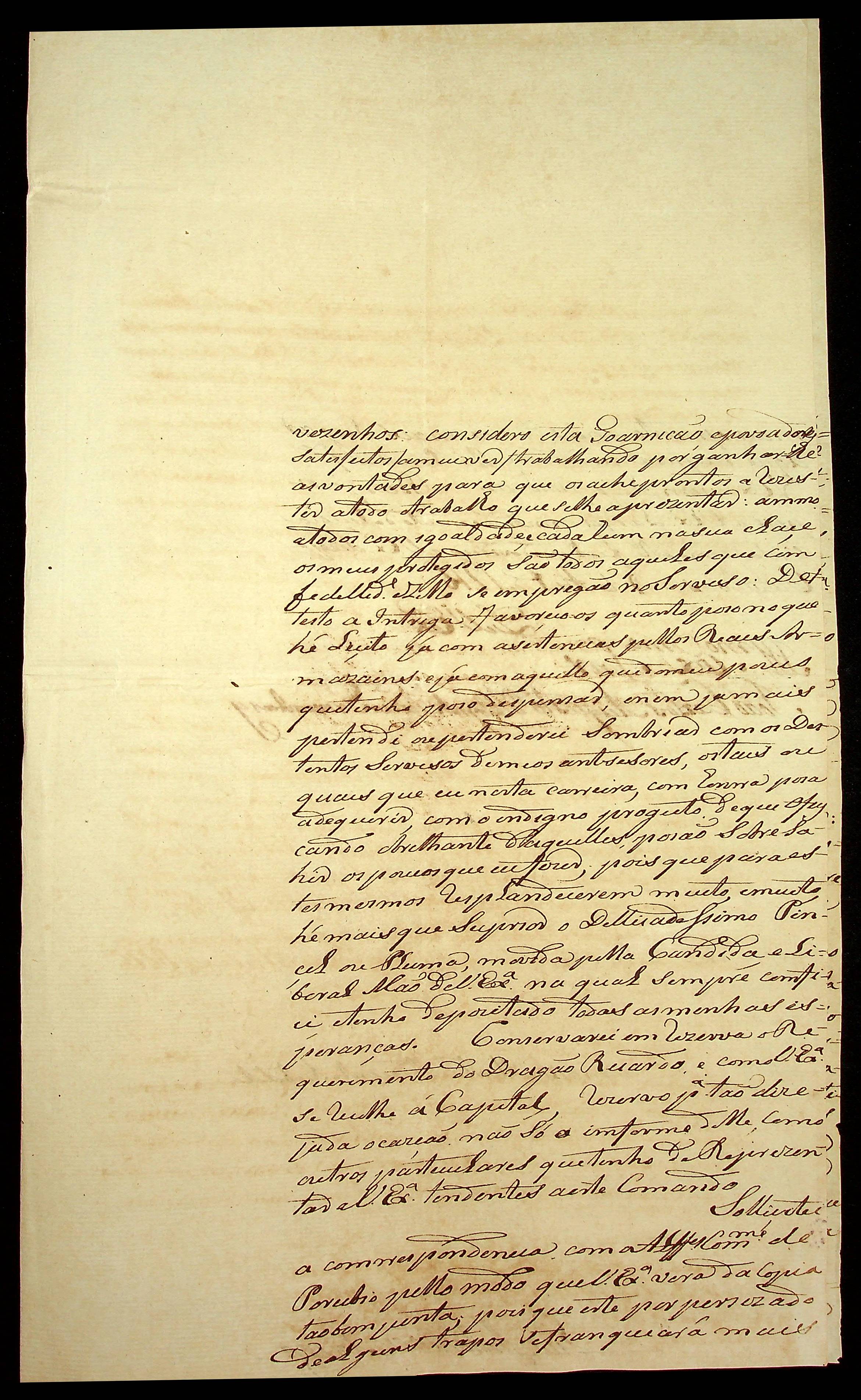 CARTA do Alferes Comandante Luiz Antônio de Souza ao [Governador e Capitão-General da Capitania de Mato Grosso] João Carlos Augusto d’Oeynhausen e Gravenberg.