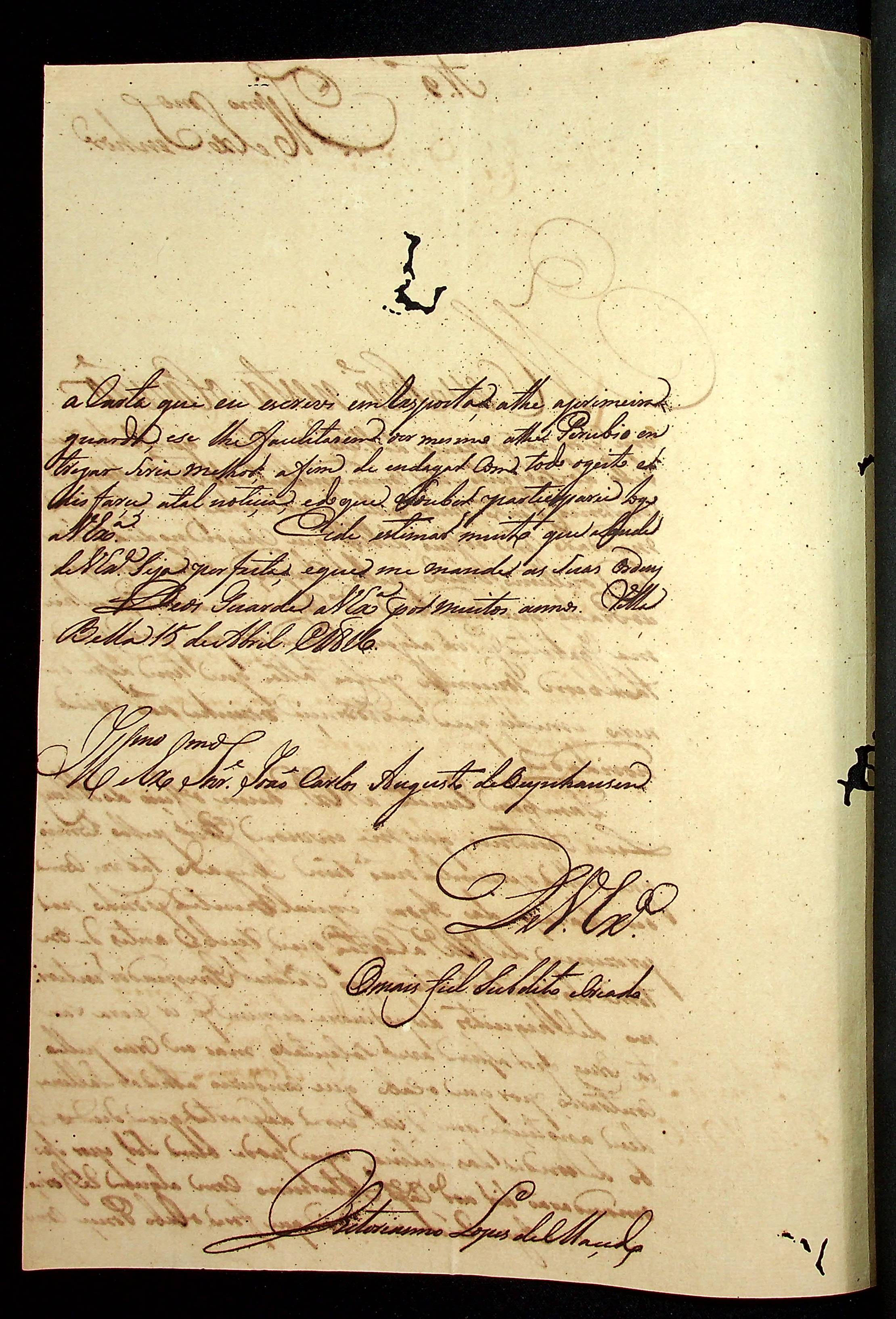 CARTA do [Coronel Comandante] Victoriano Lopes de Macedo ao [Governador e Capitão-General da Capitania de Mato Grosso] João Carlos Augusto d’Oeynhausen e Gravenberg.
