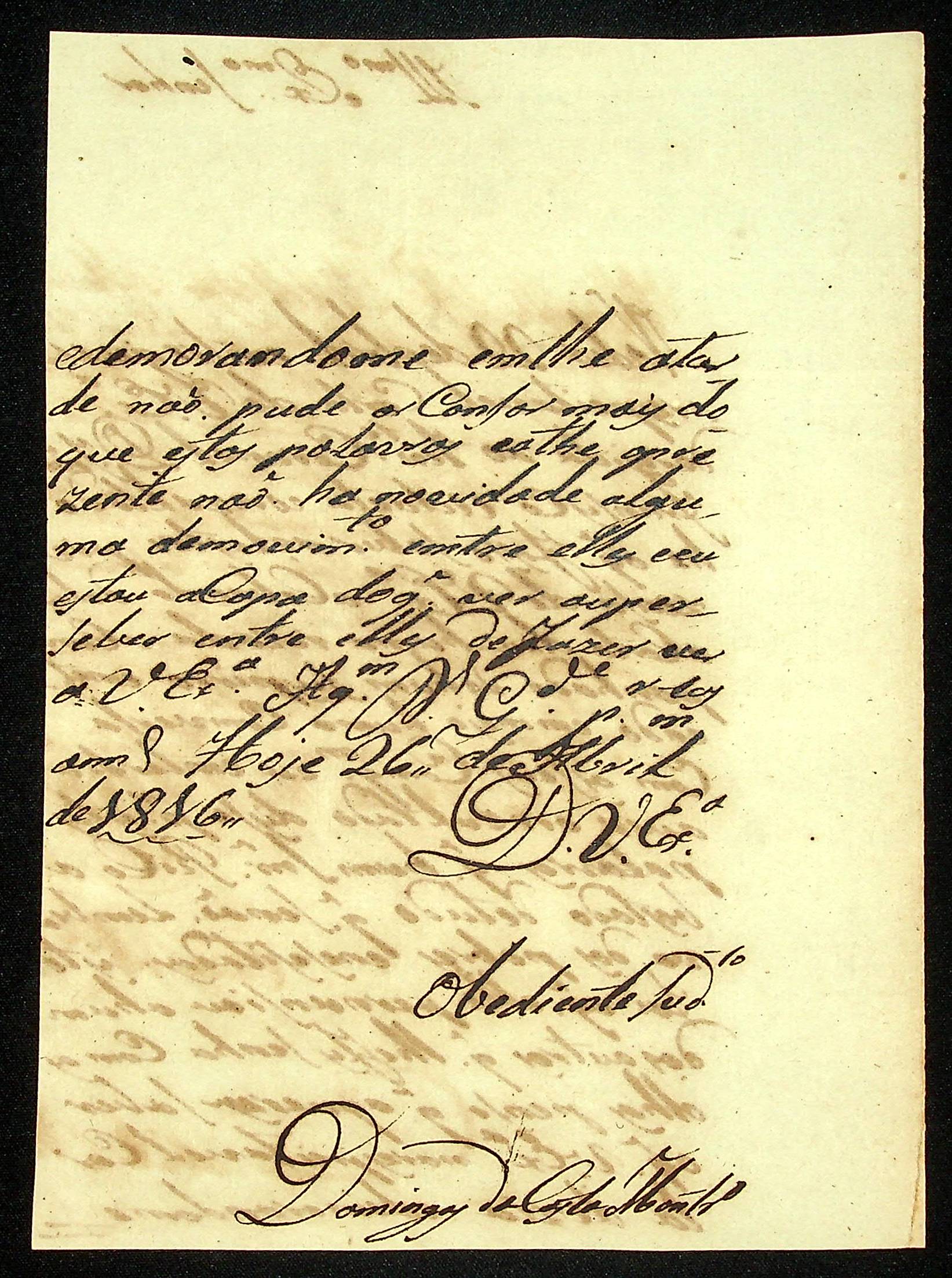CARTA do [Alferes] Domingos da Costa Monteiro ao [Governador e Capitão-General da Capitania de Mato Grosso] João Carlos Augusto de Oeynhausen e Gravenberg.