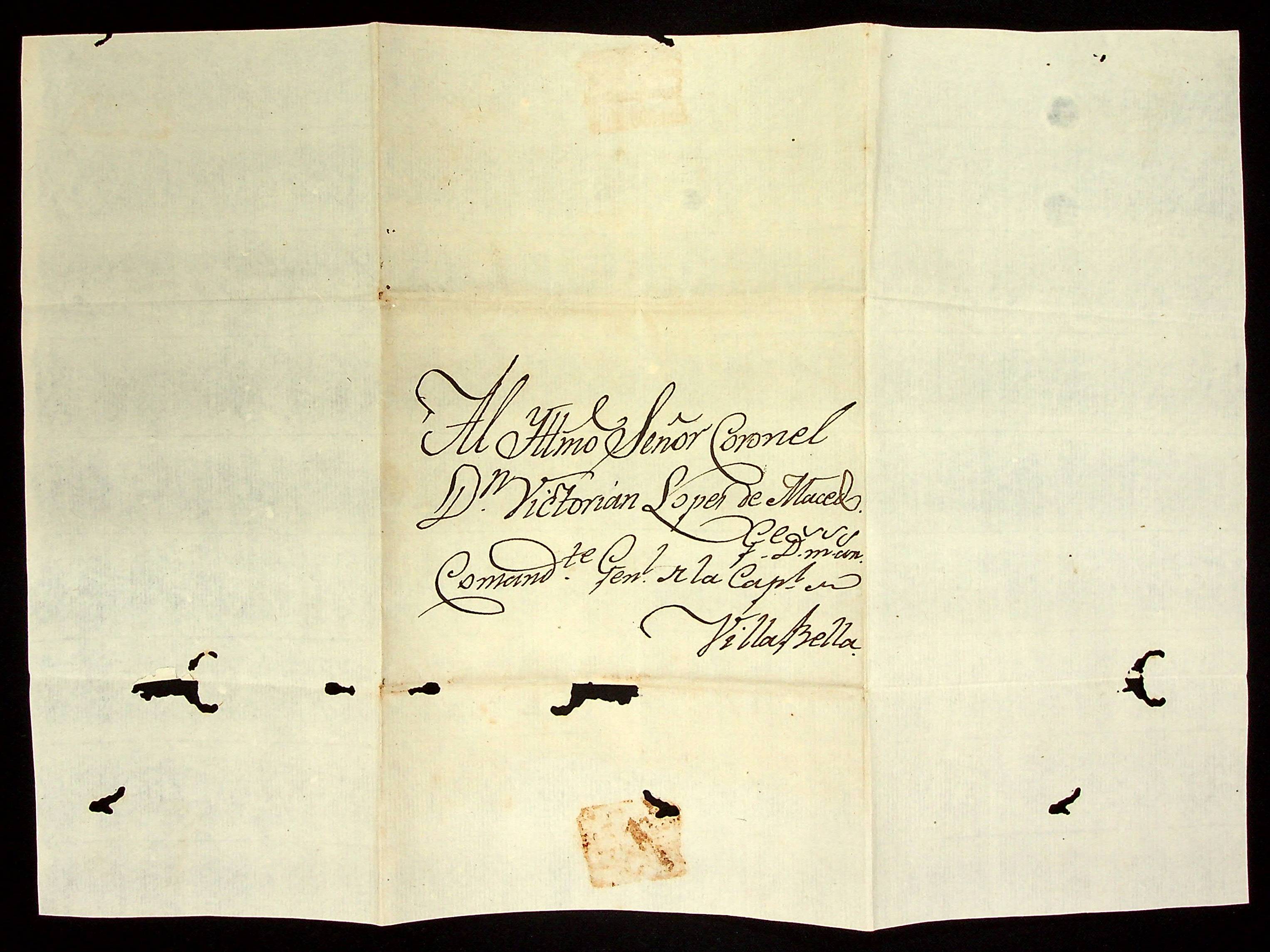 CARTA de José de [Sox…] Justiniano ao Coronel Comandante Victoriano Lopes de Macedo.