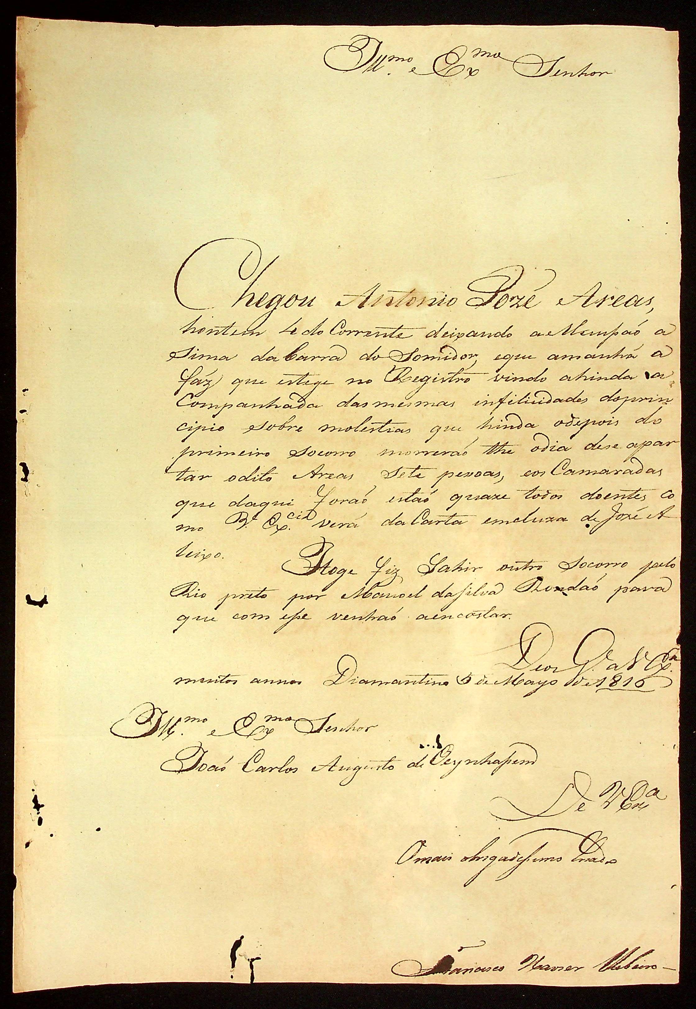 CARTA do [Comandante] Francisco Xavier Ribeiro ao [Governador e Capitão-General da Capitania de Mato Grosso] João Carlos Augusto d’Oeynhausen e Gravenberg.