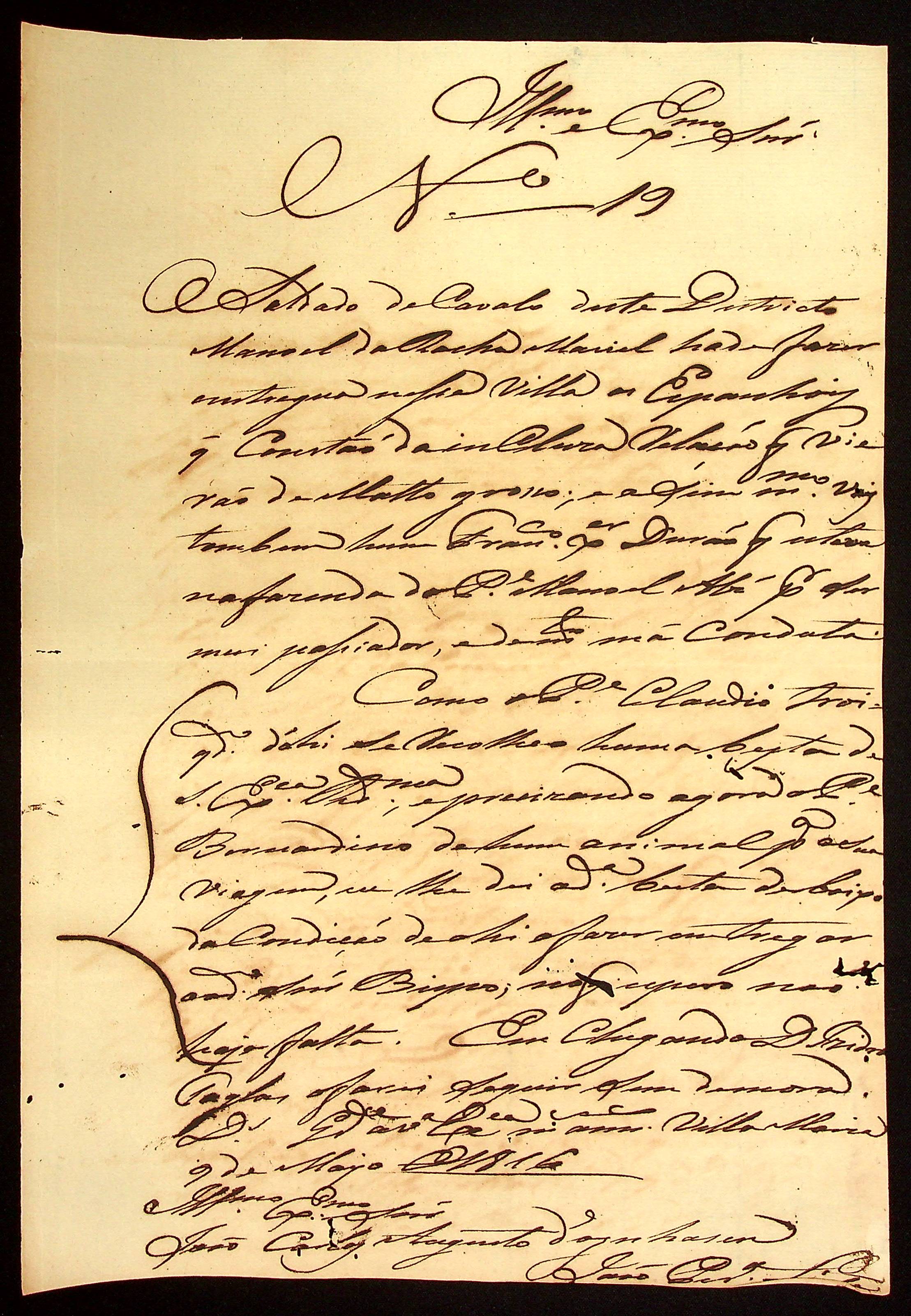 CARTA do [Sargento-mor] João Pereira Leite ao [Governador e Capitão-General da Capitania de Mato Grosso] João Carlos Augusto d’Oeynhausen e Gravenberg.