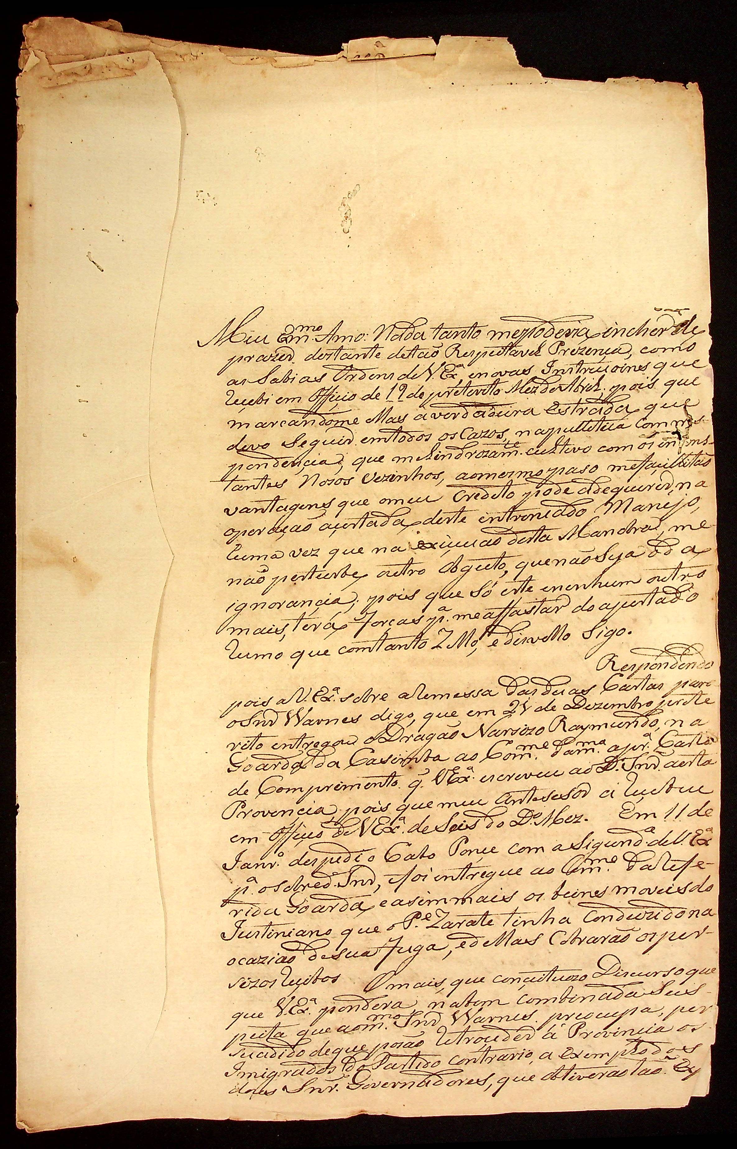 CARTA do [Alferes Comandante] Luiz Antônio de Souza ao [Governador e Capitão-General da Capitania de Mato Grosso] João Carlos Augusto d’Oeynhausen e Gravenberg.