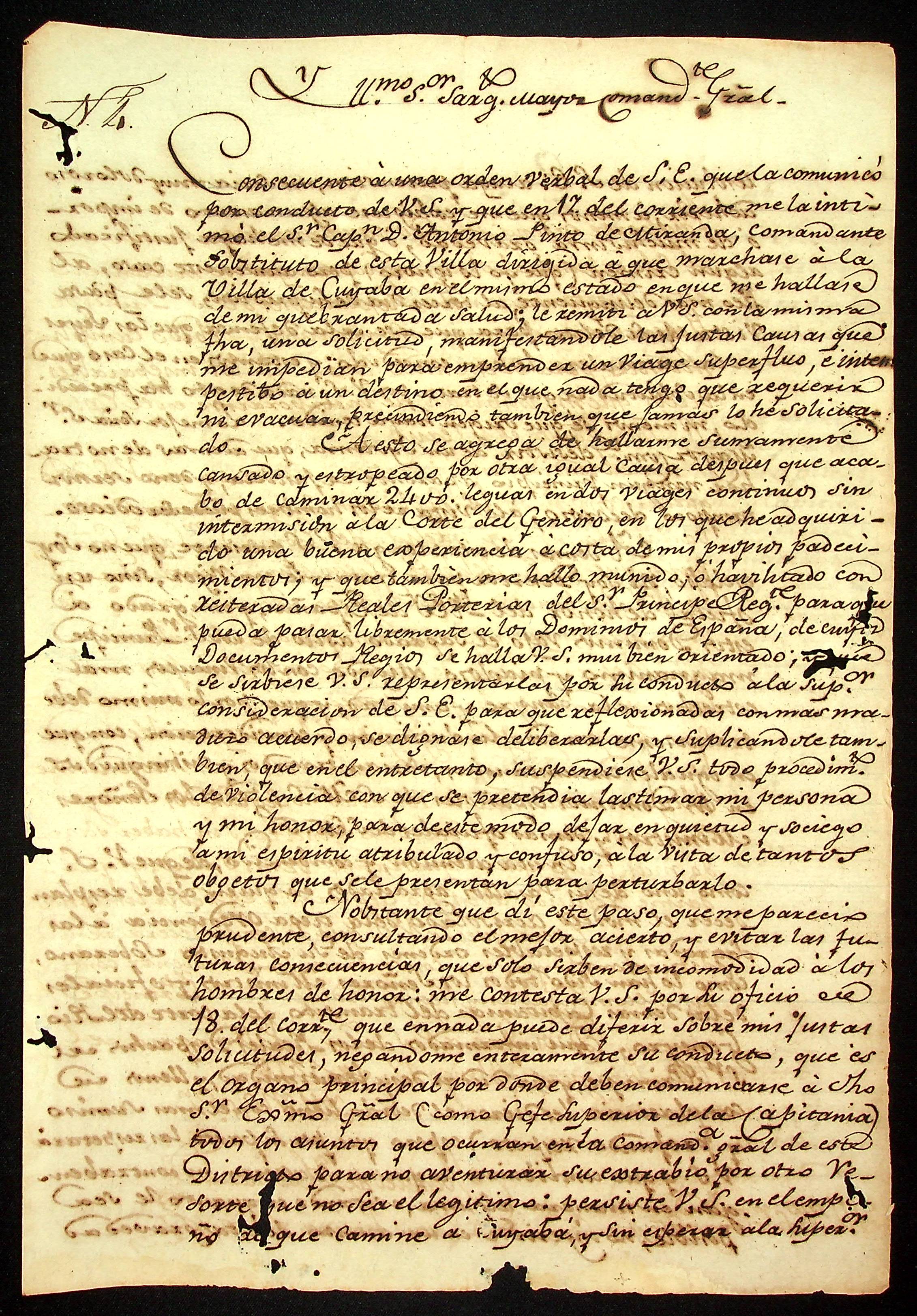 CARTA do Manoel de [Homadeche] ao Sargento-mor Comandante Geral João Pereira Leite.